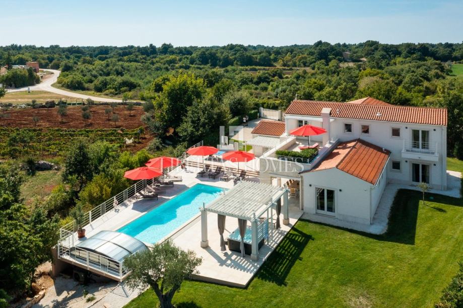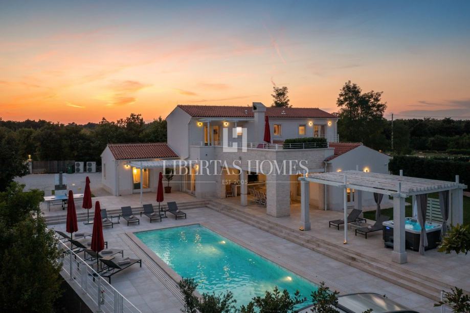 Libertas Homes ponosno nudi na prodaju izuzetnu vilu koja predstavlja vrhunac luksuza i udobnosti u prekrasnoj Istri. Smještena na prostranom zemljištu od 2000 m², ova nekretnina nudi nevjerojatne poglede na vinograde i šumu te pruža sve što vam je potrebno za savršen život ili investiciju.