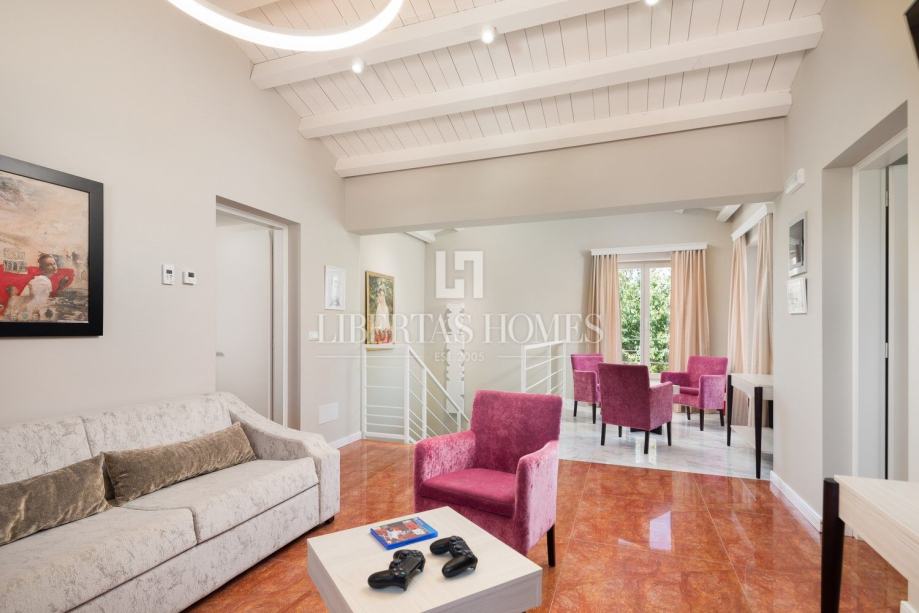 Unutrašnjost vile odlikuje se sofisticiranim minimalističkim dizajnom. S podnim grijanjem i modernim Ruark zvučnim sustavom u svim sobama, vila osigurava vrhunski komfor. Sastoji se od pet elegantnih spavaćih soba, svaka sa vlastitom kupaonicom. Glavna spavaća soba nudi izravan pristup velikoj terasi s hidromasažnom kadom, dok ostale sobe pružaju prekrasan pogled na okoliš.