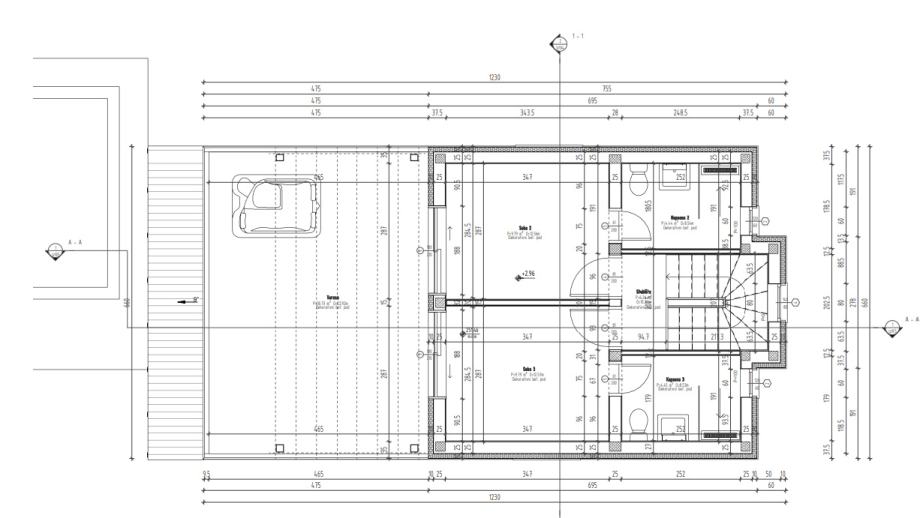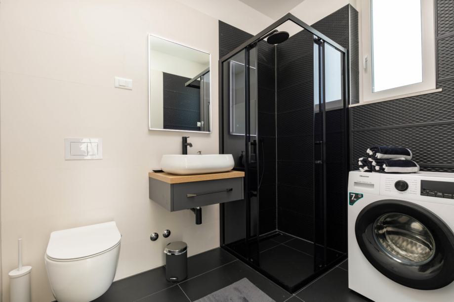 The first floor consists of an entrance hall, open space kitchen with an island and dining area and a living room, as well as a bedroom, bathroom. staircase, storage, technical room. The second floor consists of an entrance hall, two bedrooms, each with a separate bathroom and access to a spacious terrace with prepared instalations for jacuzzi.