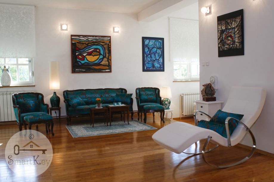 Ekskluzivna obiteljska vila nalazi se na zemljištu ukupne površine zemljišta 4.229 m2 . Vila je ukupne neto površine 550 m2 (btto 745 m2). Vili pripada još jedna stambena prizemnica površine 78 m2 u prednjem dijelu zemljišta, kao i drvena kućica veličine 24 m2 koja služi kao objekt za asistenciju u donjem dijelu zemljišta gdje se nalazi veliki voćnjak.