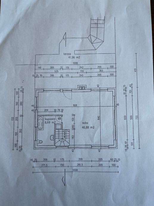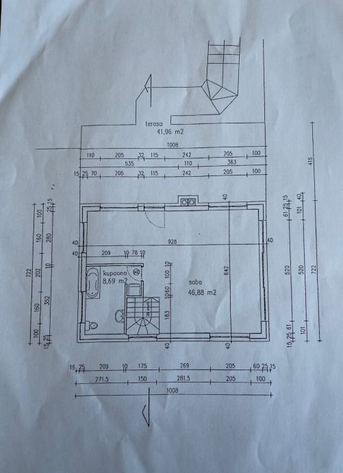 Stepeništem se dolazi na gornju etažu gdje se nalaze tri spavaće sobe, kupaonica i terasa površine 40 m2.