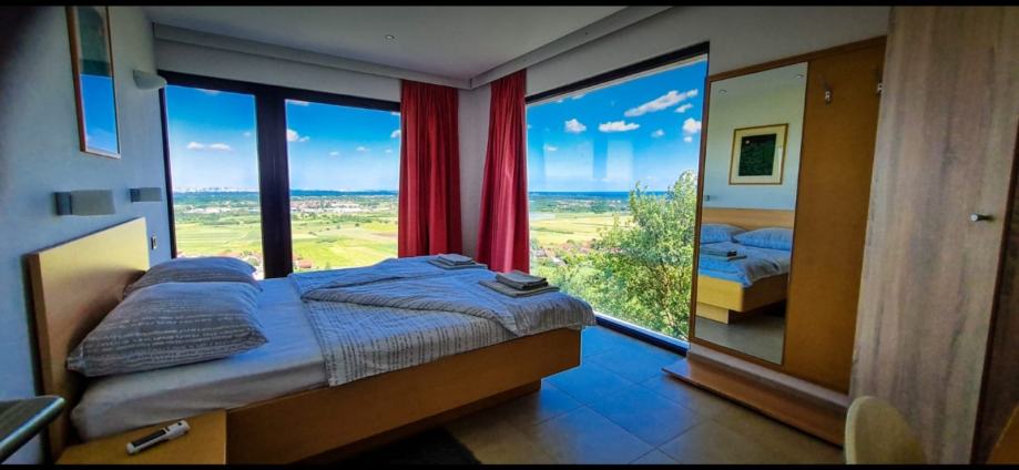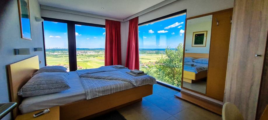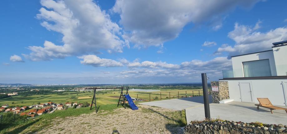 Interijer obiluje dnevnim svjetlom zbog velikih staklenih stijena postavljenih na pročelju koje omogućavaju iz svih prostorija jedinstven pogled na grad Zagreb i obronke Medvednice.