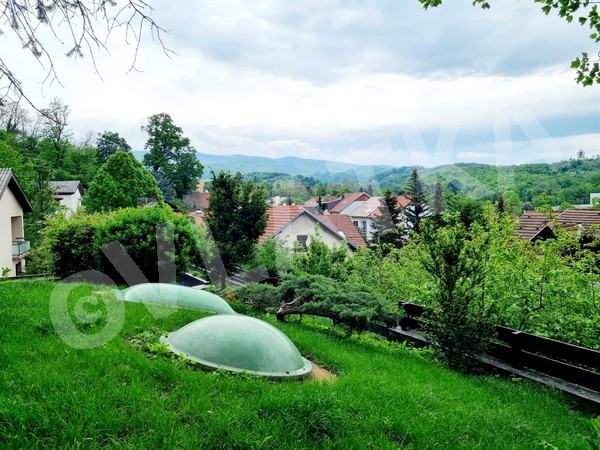 Kuća je smještena na uzvisini s prekrasnim pogledom, u miru, tišini i zelenilu, okružena vrtom od 1500 m2.