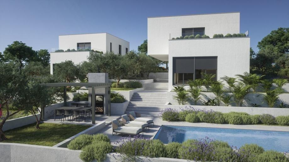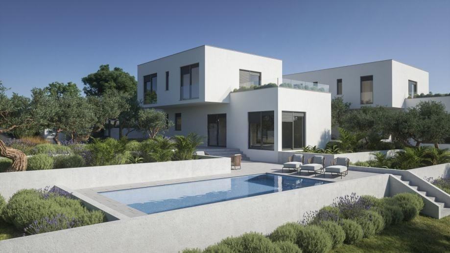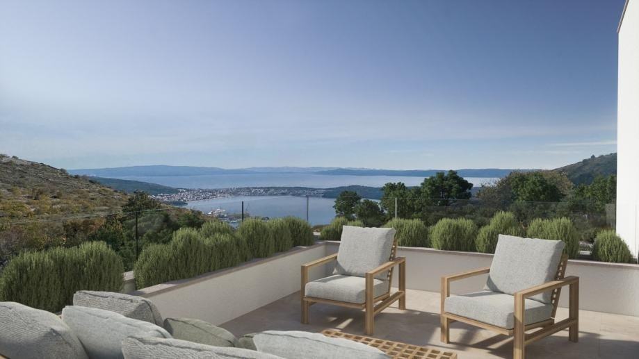 Posredujemo pri prodaji luksuzne vile u izgradnji s otvorenim pogledom na more i otoke. Nalazi se na parceli površine 659m2. Proteže se na dvije etaže, a sastoji se četiri spavaće sobe, radne sobe, pet kupaonica, dnevnog boravka s kuhinjom i blagovaonicom te dvije terase. Nalazi se na mirnoj lokaciji čime pruža potpunu intimu, a u blizini su Trogir, Split, zračna luka te svi potrebni sadržaji.