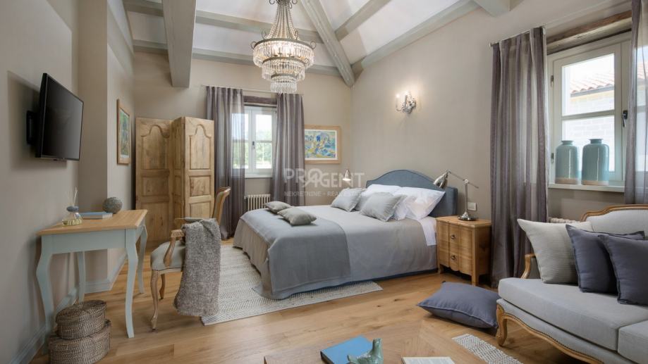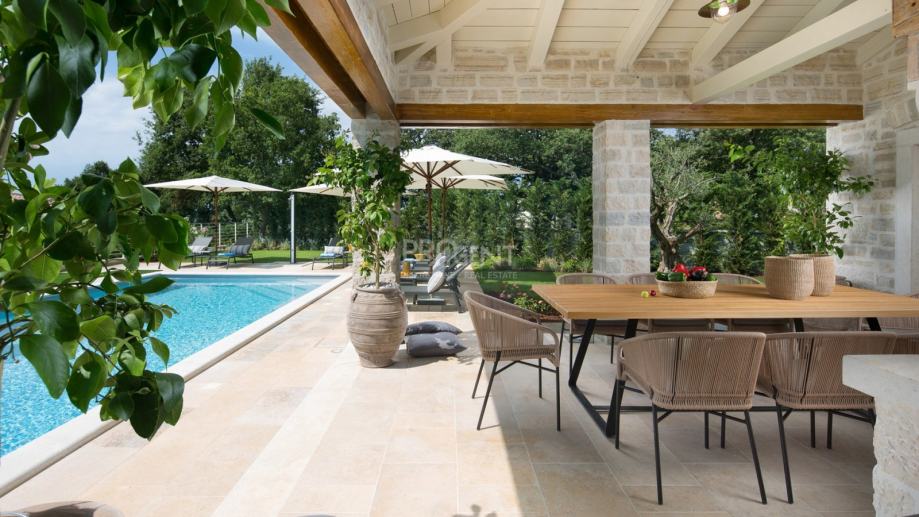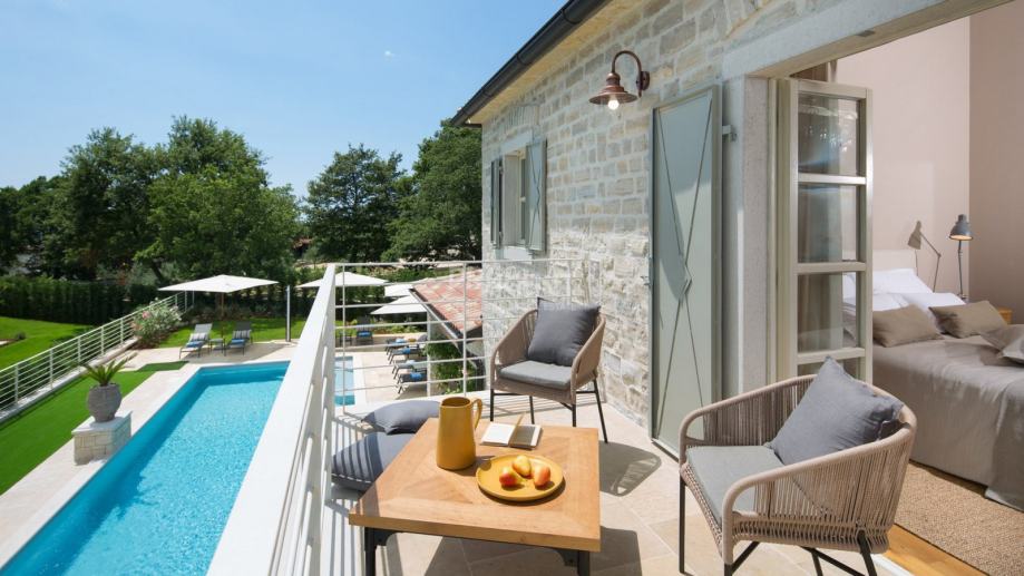 Četiri luksuzne i dizajnerski namještene vile, svaka sa svojom okućnicom i svojim bazenom sa hidromasažnim kutom smještene na rubu sela udaljenom 15 km od mora u Limskom kanalu i 25 km od Rovinja. Ville su raskošno opremljene i namještene rustikalnim namještajem nudeći svojim gostima vrlo visoku razinu komfora dok se sa balkona na katu iz svake kuće pruža prelijepi panoramski pogled na more. Sve četiri vile svojim gostima nude i zajedničke sadržaje koji predstavljaju jedinstvenu ponudu kod ovakvog tipa kuća za odmor u Istri a koji se sastoje od 2 teniska terena, jednog višenamjenskog igrališta za košarku, odbojku i mali nogomet, boćališta, fitnessa na otvorenom, dječjeg igrališta i vrta u kojem gosti kuća mogu ubrati ekološki uzgojeno povrće. Svi navedeni sadržaji su uključeni u cijenu.