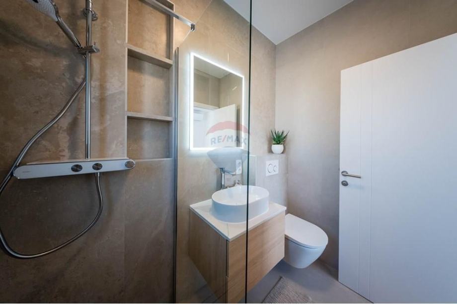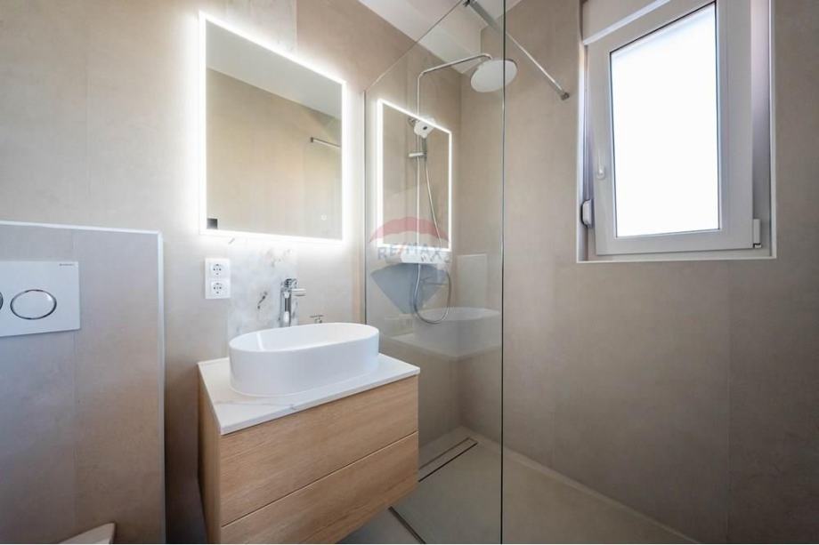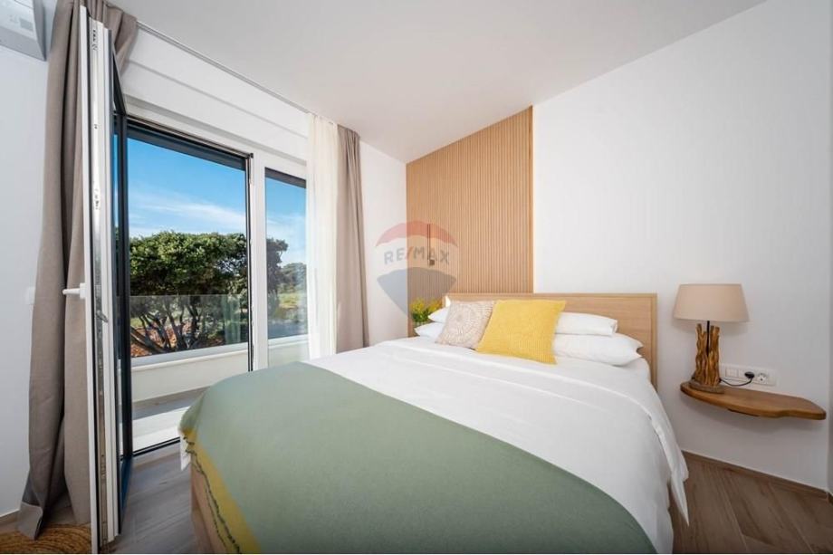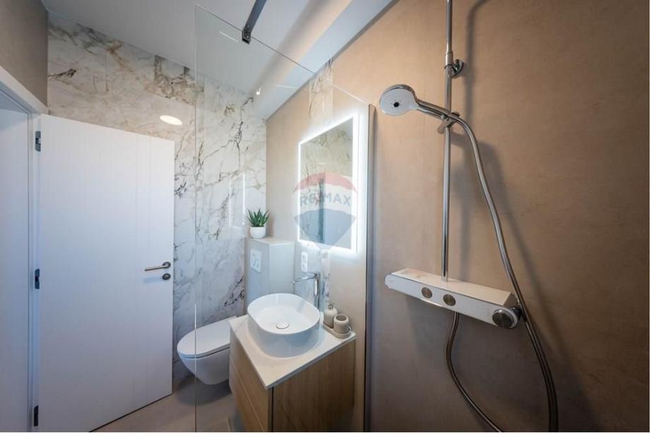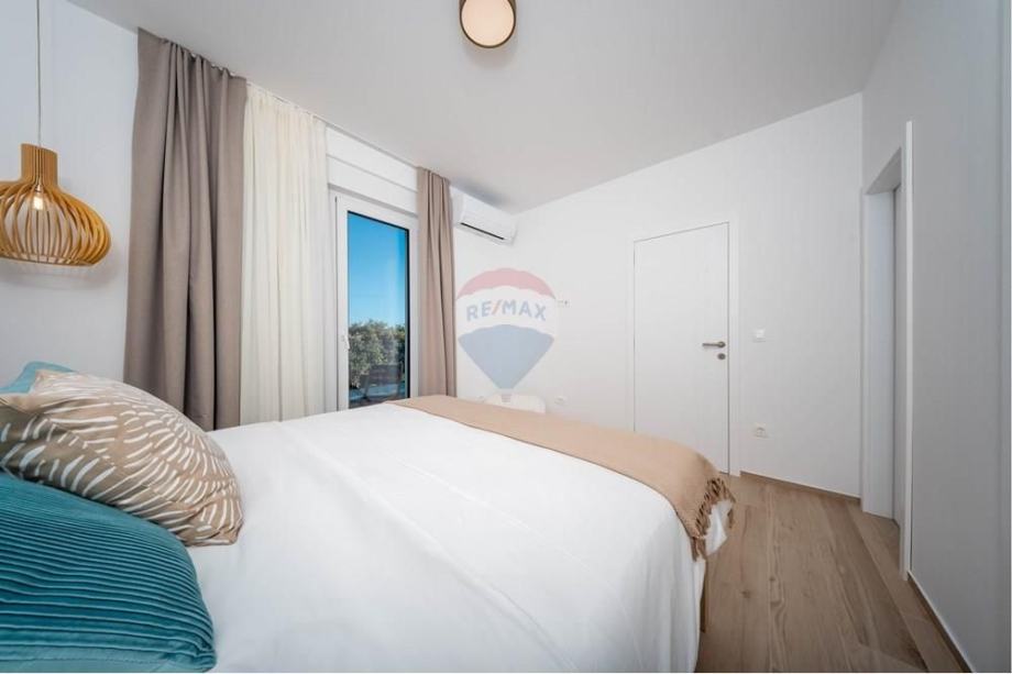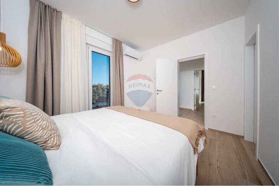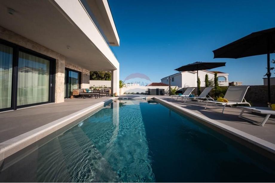 Sa ukupno 220 kvadratnih metara stambenog prostora, ova nekretnina je izuzetna po svojoj prostranosti i funkcionalnosti. Sastoji se od 5 soba, uključujući 4 luksuzne spavaće sobe i 5 vrhunski opremljenih kupaonica, što čini ovu kuću savršenim domom za veće obitelji ili izuzetno komotno stanovanje. Panoramski pogled na more i otvoreni zeleni prostori dodatno doprinose ekskluzivnom ugođaju boravka.