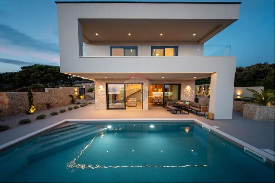 Novo na tržištu, luksuzna kuća u predivnom priobalnom naselju Mandre, čeka svog novog vlasnika! Ova raskošna vila smještena je na odličnoj poziciji te nudi vrhunski životni prostor uz Jadransko more. Svojim modernim mediteranskim stilom, kuća se ističe sofisticiranim dizajnom i elegancijom, a predstavlja pravu oazu luksuza i udobnosti.