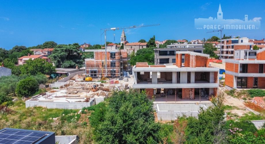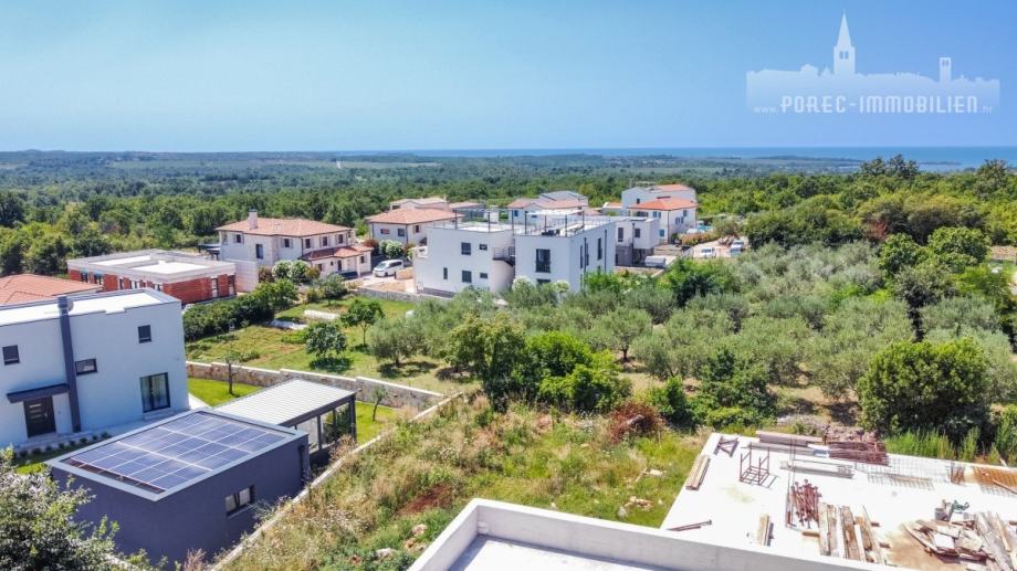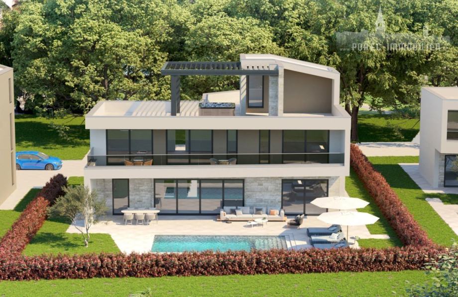 U malom turističkom mjestu u blizini Poreča, nalazi se ova prekrasna luksuzna vila suvremene arhitekture sa pogledom na more i bujno zelenilo.