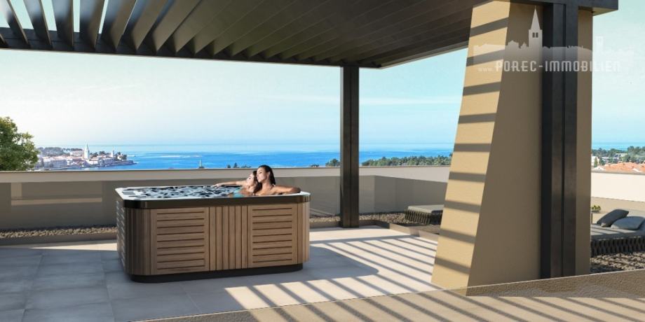 Na drugom katu se nalazi velika krovna terasa od 45 m2 sa panoramskim pogledom na more.