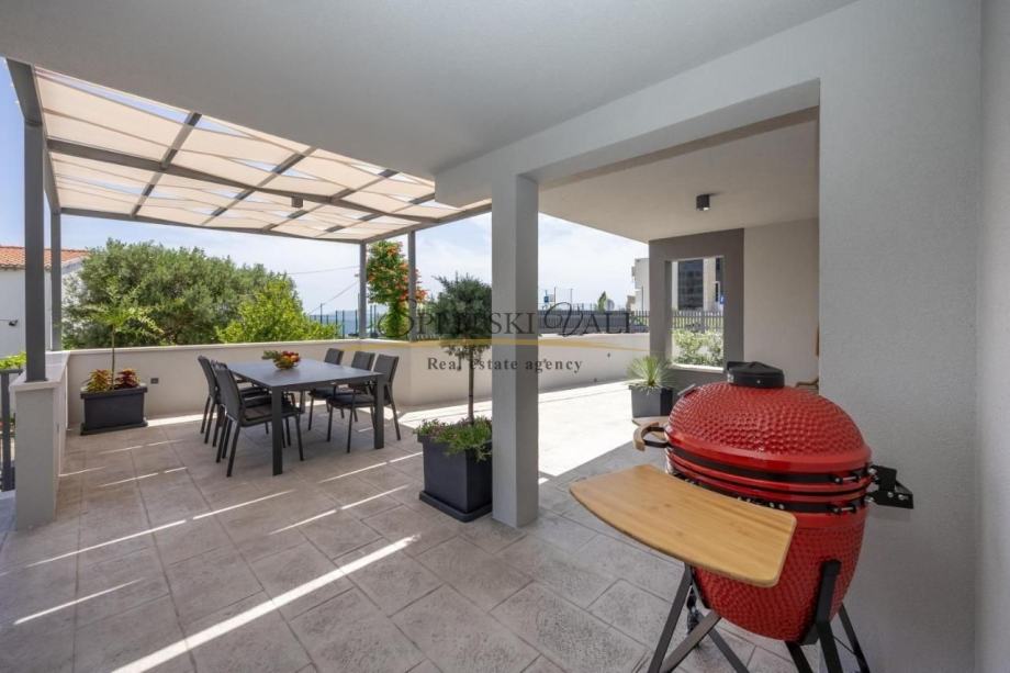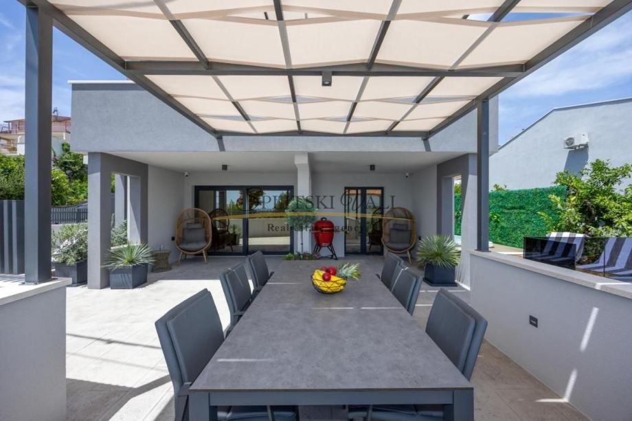Vila se prostire na 170 m2 a sastoji se od 3 spavaće sobe, kuhinje s blagovaonicom, dnevne sobe, četiri kupaonice, dvorišta s roštiljem i jaccuzijem,saune, parkinga za više vozila.