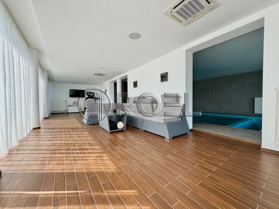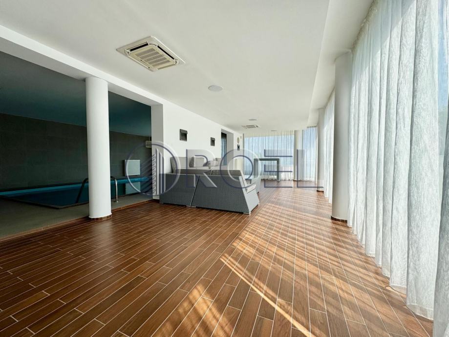 Prizemlje vile krije wellness oazu: unutarnji bazen, sauna, moderno opremljen fitness, te izlaz na prostranu terasu sa sunčalištem i relax zonom. Posebna atrakcija je „zid tuš“ koji uz noćnu ambijentalnu rasvjetu vrta stvara čaroban ugođaj. Tu se nalazi i elegantna spavaća soba s vlastitom kupaonicom te profinjeni vinski podrum s cigar sobom – savršeno mjesto za opuštanje i uživanje.