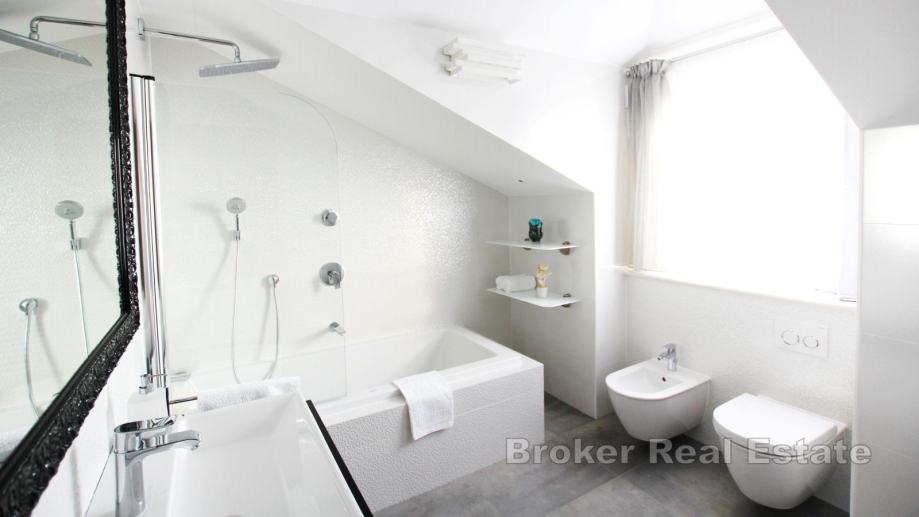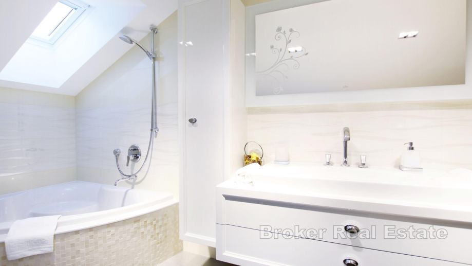 Prodaje se luksuzna vila s panoramskim pogledom na more i otoke, na Čiovu. Njenih oko 400 m² stambene površine smješteno je na zemljištu od 379 m². Sve prostorije raspoređene su preko četiri etaže, dok se u okolišu vile nalaze sadržaji.