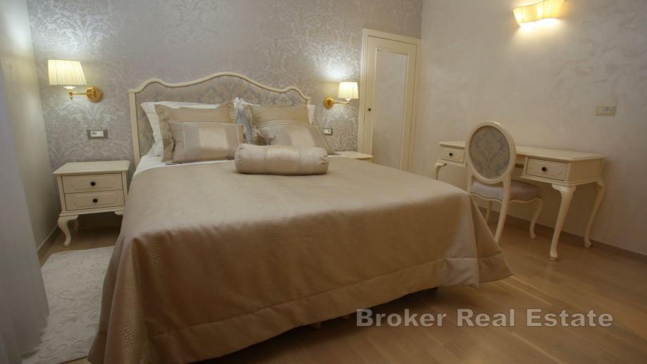 Cijeli objekt je opremljen videonadzorom, solarima za toplu vodu, podnim grijanjem u kupaonicama i sa sveukupno 8 klima uređaja, a vila se prodaje u potpunosti namještena i opremljena. Osim bazena i sunčališta, vila ima i grill, masažnu kadu, vrt s dalmatinskom hortikulturom te vanjska parkirna mjesta.