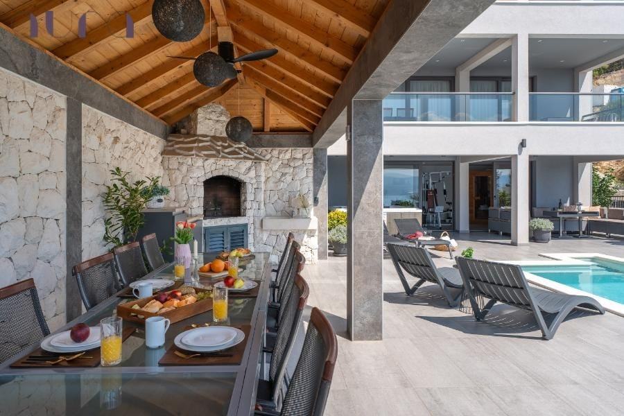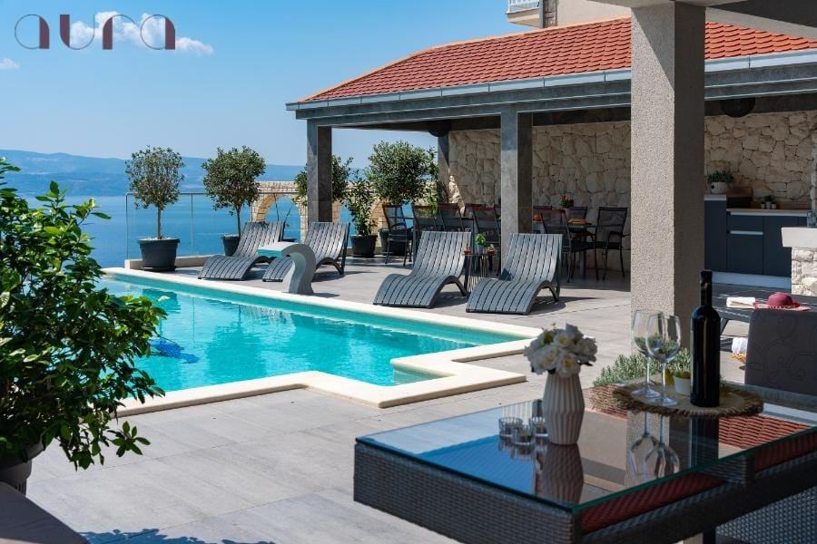 Smještena između mora i planine, u blizini plaža s kristalno čistim morem, nudi savršenu ravnotežu između luksuza i prirode. Svojim rasporedom, kapacitetom i opremljenošću idealna je i kao investicija u turistički najam s iznimno visokim povratom, s obzirom na veliku potražnju u ovom dijelu Dalmacije.