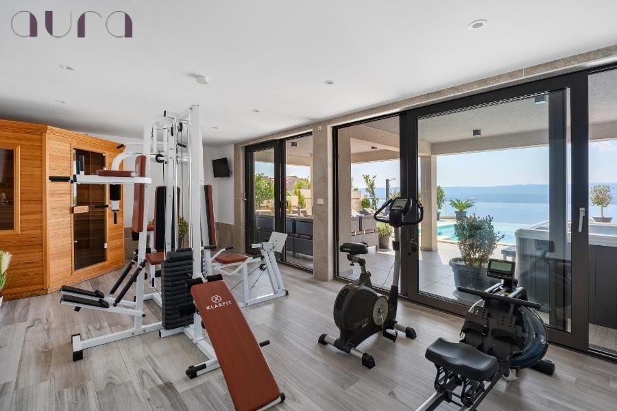 U prizemlju vile smješten je privatni wellness centar s saunom, jacuzzijem (SPA) i fitness prostorom. Ovaj prostor osmišljen je da pruži potpuni osjećaj luksuza i opuštanja nakon dana provedenog na plaži ili izleta po Dalmaciji.