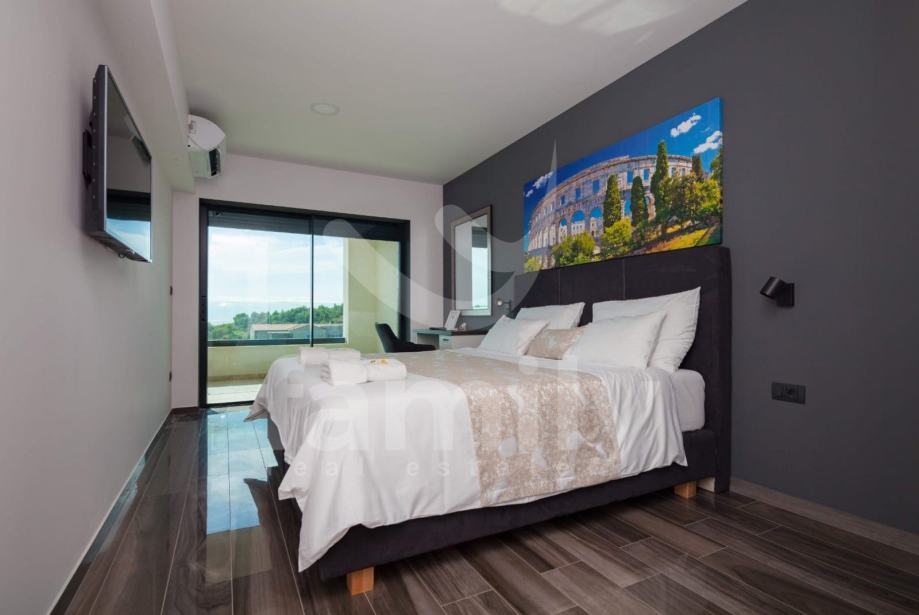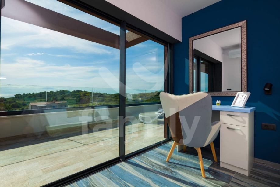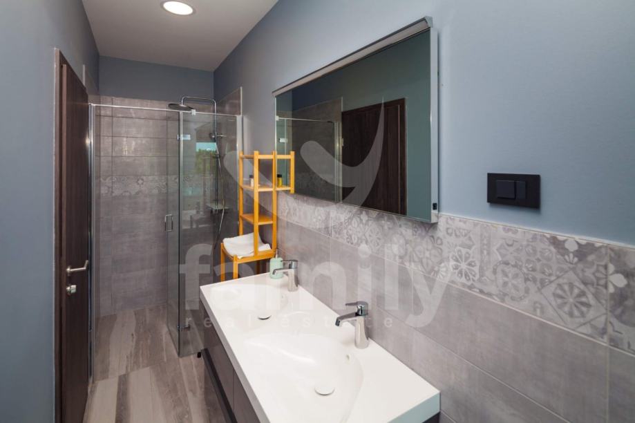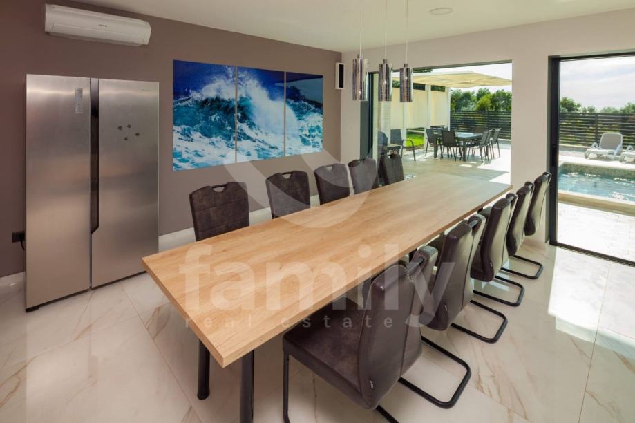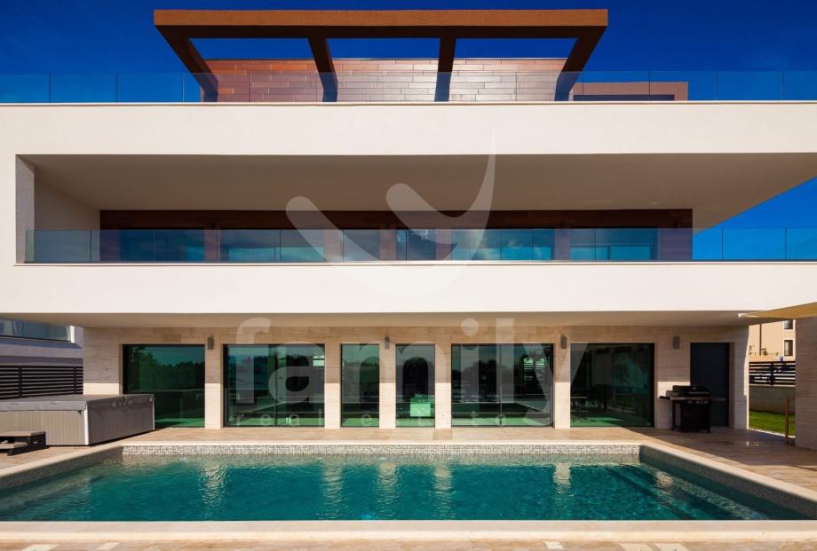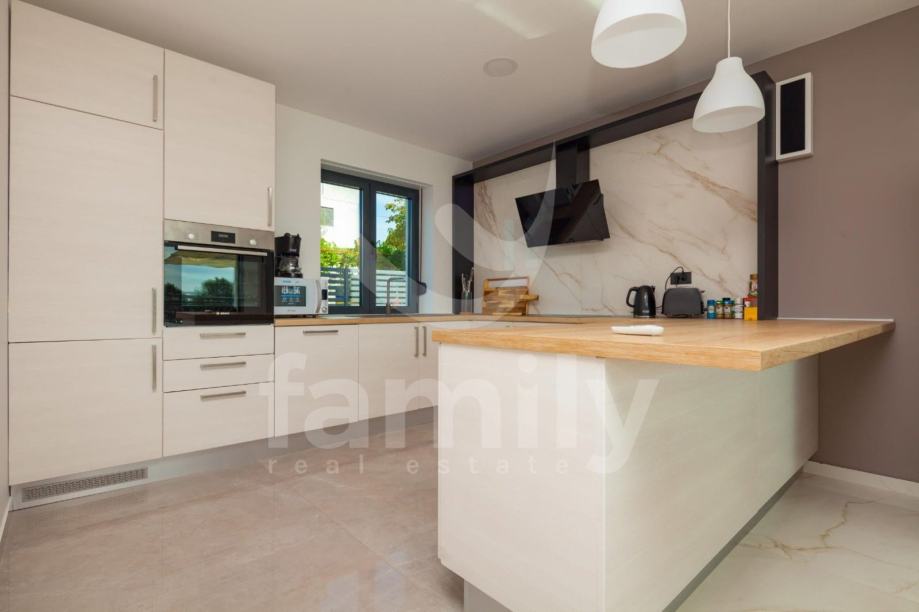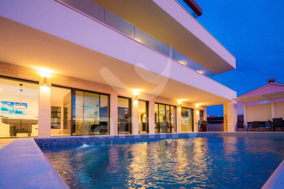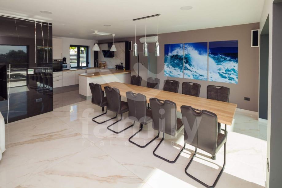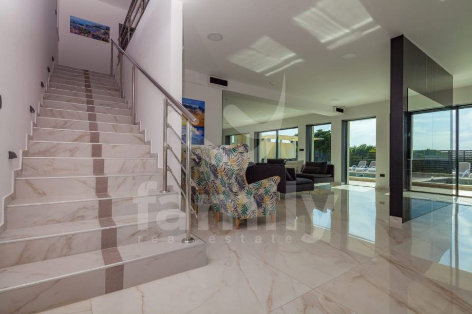 Ova moderna vila opremljena je visoko kvalitetnim namještajem po narudžbi, kvalitetnim sanitarijama, ALU stolarijom u boji. Termoizolacija objekta nalazi se na fasadi i ravnome krovu. Za hlađenje koriste se 9 jednica klima uređaja po jedna u svakoj spavaćoj sobi i dnevnom boravku. Moderna LED rasvjeta daje poseban ugođaj sobama u ovoj prekrasnoj vili. U dvorištu se nalaze 3 parkirna mjesta.