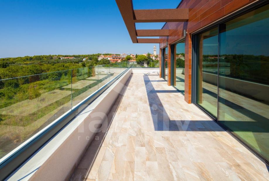 Upravo u naselju Premantura smještena je ova luksuzna vila sa bazenom na svega 400 m od mora s predivnim panoramskim pogledom na more. Vila je smještena na zemljištu površine 633 m2, a proteže se na tri etaže sa ukupno 480 m2 bruto stambene površine.