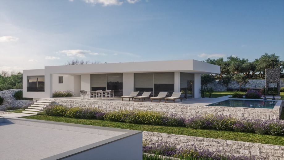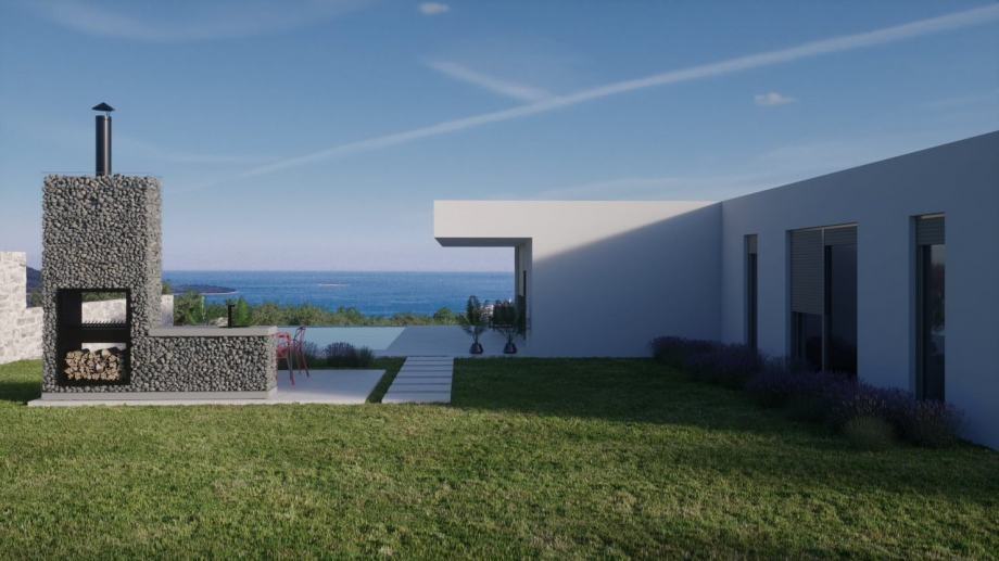 Ima pripadajuću okućnicu od 1200 m2 koja će biti uređena u mediteranskom stilu.