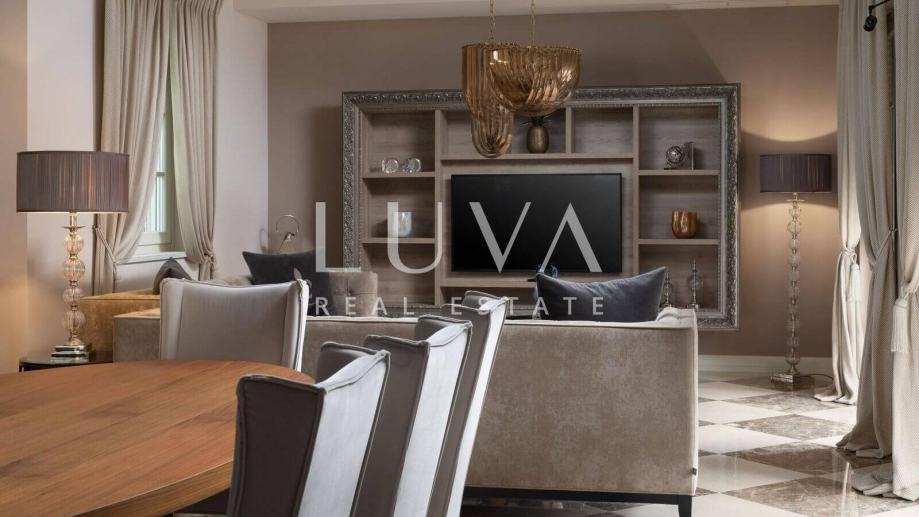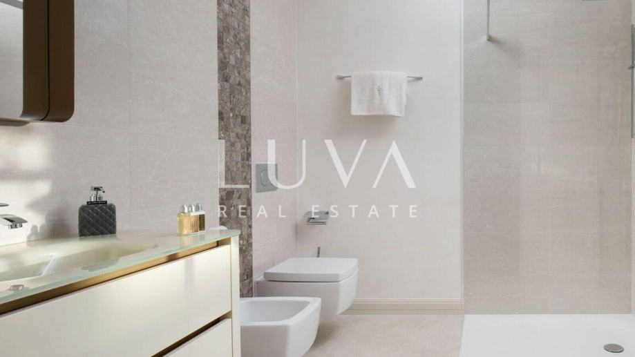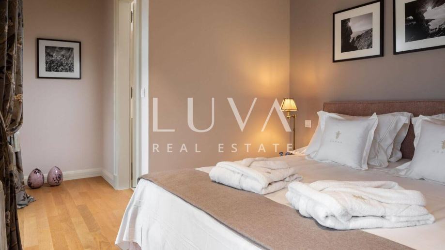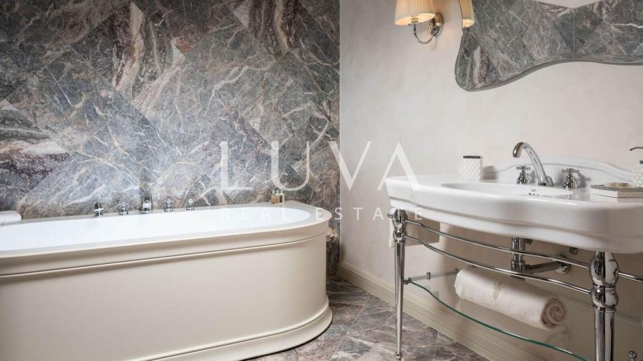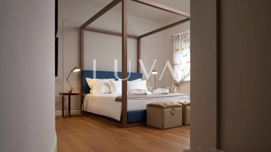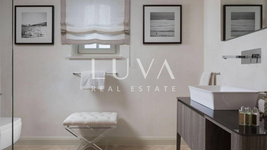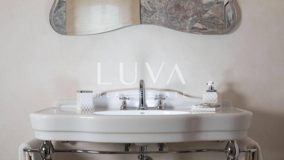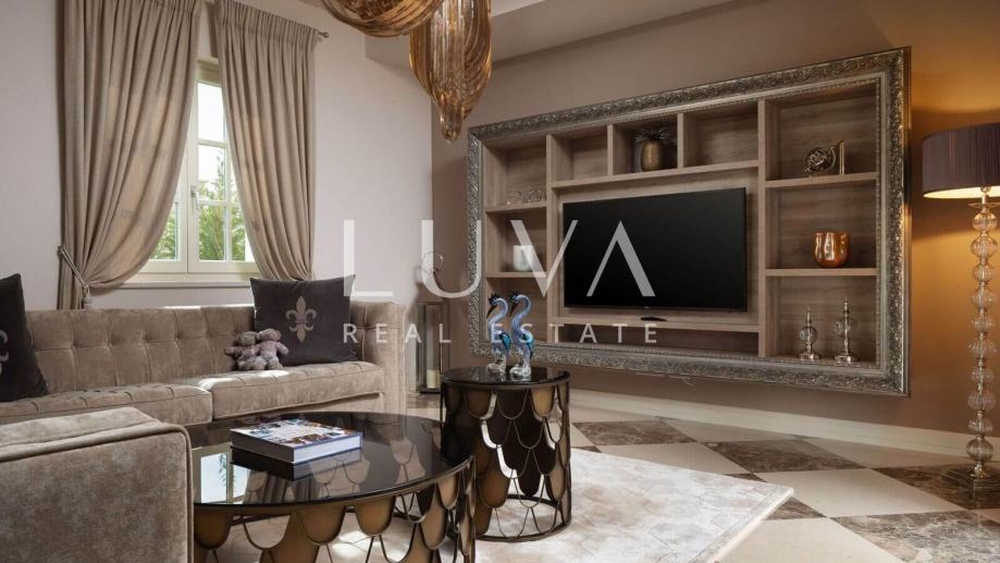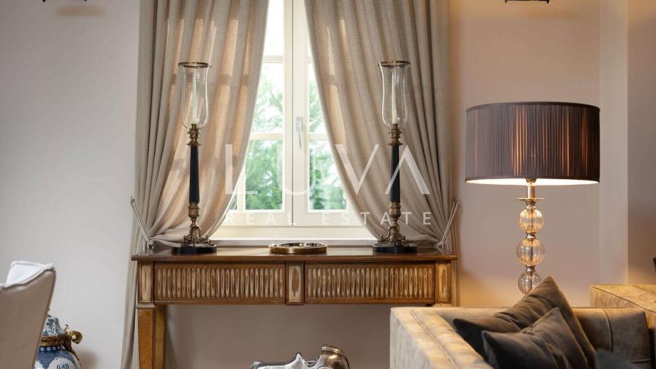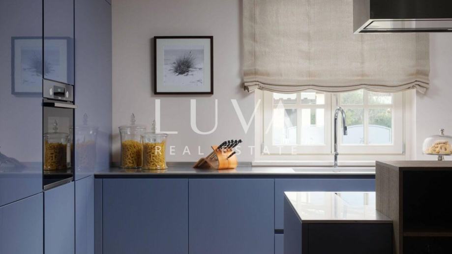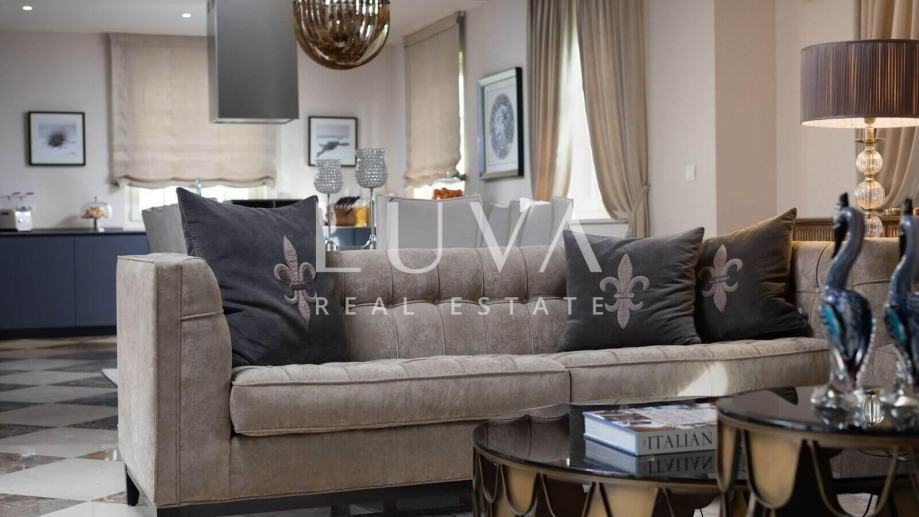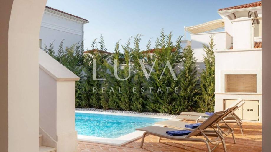 Vila je izgrađena 2018. godine, površine je 287 m2, a prostire se na 2 etaže. Eksterijerom i interijerom vile prevladava klasični elegantan stil uređenja. U prizemlju vile je smještena potpuno opremljena kuhinja i prostrani dnevni boravak iz kojeg se izlazi na vanjsku natkrivenu terasu gdje se nalaze roštilj i veliki stol za blagovanje. Ispred natkrivene terase se nalazi vanjski bazen okružen ležaljkama za sunčanje. Osim dnevnog boravka vila ima 4 spavaće sobe od kojih svaka ima vlastitu kupaonicu. Ova luksuzna vila, kao i ostale vile unutar kompleksa su trenutno u funkciji turističkog najma te mogu biti dobra prilika i kao investicija u turizam u Istri.