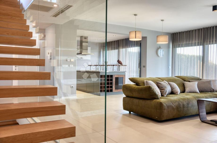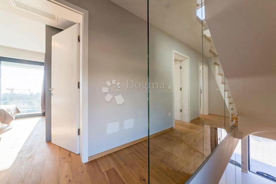 U suterenu wellness zona s saunom i fitnessom pruža privatno utočište za odmor. Moderna klimatizacija i podno grijanje osiguravaju ugodan život u svako godišnje doba.