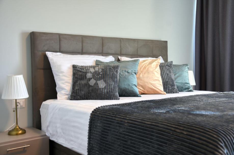 Vanjski prostor uključuje bazen, sunčalište, natkrivenu terasu za objedovanje i roštilj. Na krovnoj terasi jacuzzi s panoramskim pogledom na more.