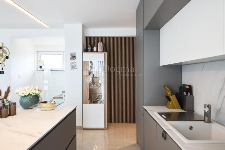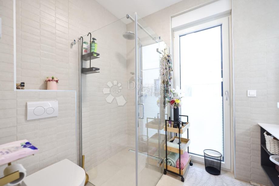 Vila je opremljena podnim grijanjem i toplinskim dizalicama, a okoliš je pažljivo uređen s travnjakom, zelenilom i privatnom ostavom iza kuće. Mirno okruženje, blizina mora te dobra prometna povezanost čine ovu nekretninu izvanrednom kako za obiteljski život, tako i kao investiciju s potencijalom za turistički najam.