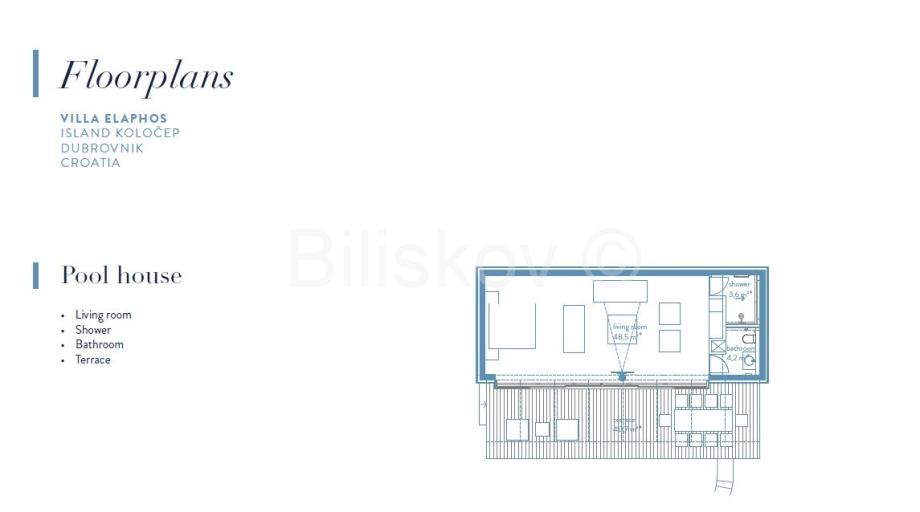 Luksuzna villa površine 309 m2 sagrađena 2019.godine na parceli površine 1.333 m2. Villa se sastoji od 4 spavaće sobe, 4 kupaonice sa wc-om, velikog dnevnog boravka, kuhinje s blagovaonicom, prostrane terase, bazena I pomoćne kuće uz bazen površine 57 m2.