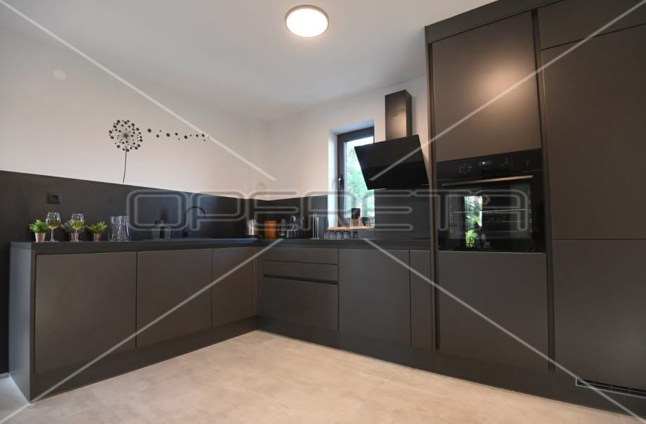 Ova moderna vila prostire se na dvije etaže, s ukupnom neto korisnom površinom od 190 m², dizajniranih tako da svaki dio nudi luksuz i udobnost. Prizemlje otvorenog koncepta povezuje prostrani dnevni boravak, kuhinju i blagovaonicu, opremljene vrhunskim namještajem i uređajima, pružajući osjećaj sofisticiranosti i udobnosti. U prizemlju se također nalazi privatna teretana, savršena za opuštanje i rekreaciju, uz direktan pristup terasi i dvorištu iz gotovo svake prostorije.