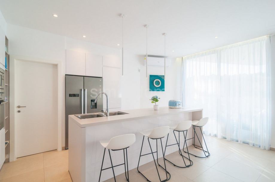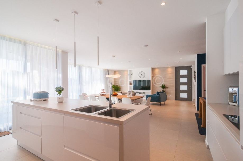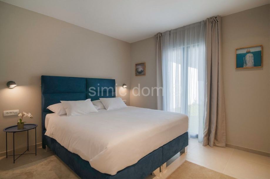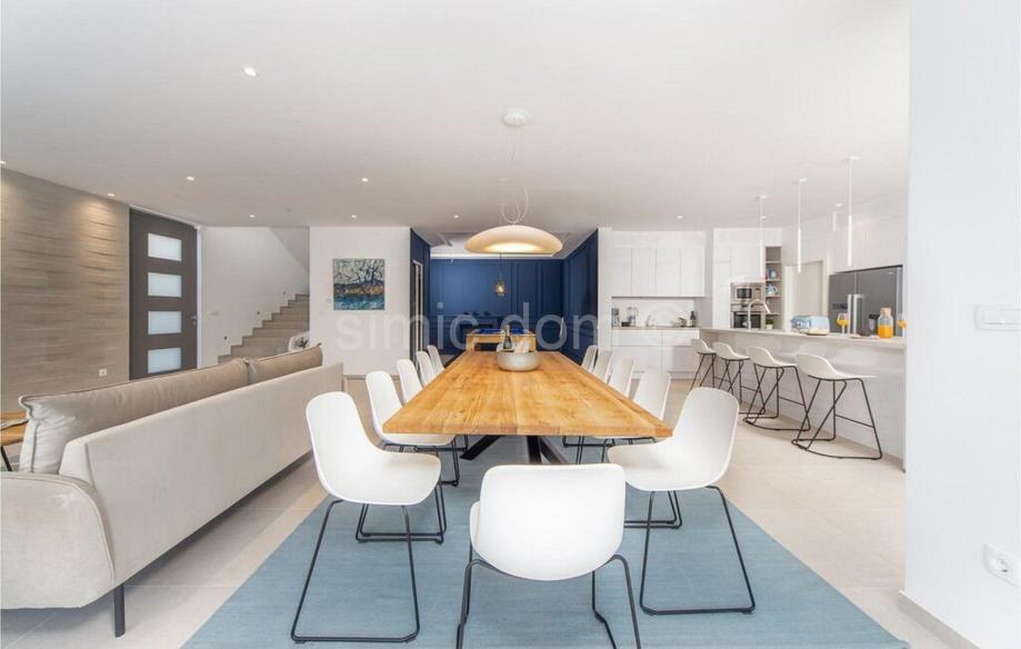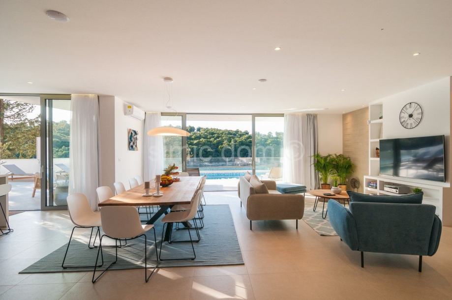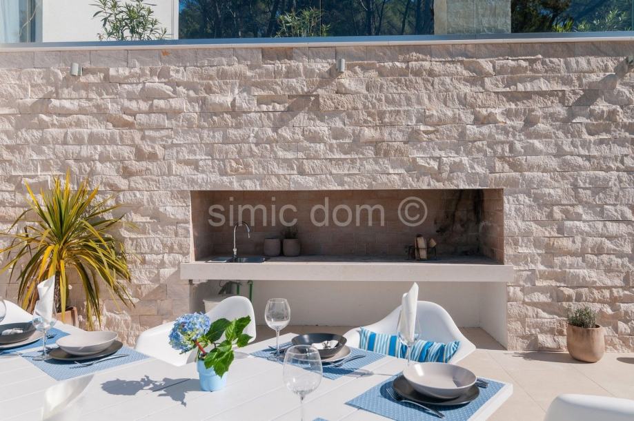 Posredujemo u prodaji prekrasne, novoizgrađene vile na otoku Braču. Vila se nalazi u prvom redu do kristalno čistog mora. Ukupna joj je stambena površina 244m2, a sastoji se od prizemlja i dva kata. Prizemlje vile se sastoji od ulaza, dnevnog boravka, blagovaonice, kuhinje, stubišta, dodatnog toaleta, garderobe i tehničke sobe. Velike staklene stijene omogućuju mnoštvo dnevnog svjetla i dojam otvorenog prostora. Na ovoj je razini i velika terasa s bazenom i sunčalištem, a pruža se i prekrasan pogled na more i uvalu. Na prvom se katu nalazi hodnik s četiri spavaće sobe i pripadajućim kupaonicama. Drugi kat, pak, ima još dvije spavaće sobe s kupaonicama te prostor u kojem je sauna sa spravama za vježbanje. Vila je vrlo luksuzno opremljena i namještena (alarm, video nadzor, klimatizacijski uređaji, visokokvalitetna keramika i oprema za kupaonice, kućanski aparati renomiranog proizvođača), a dostupan je i parking za četiri automobila. Vlasništvo uredno.