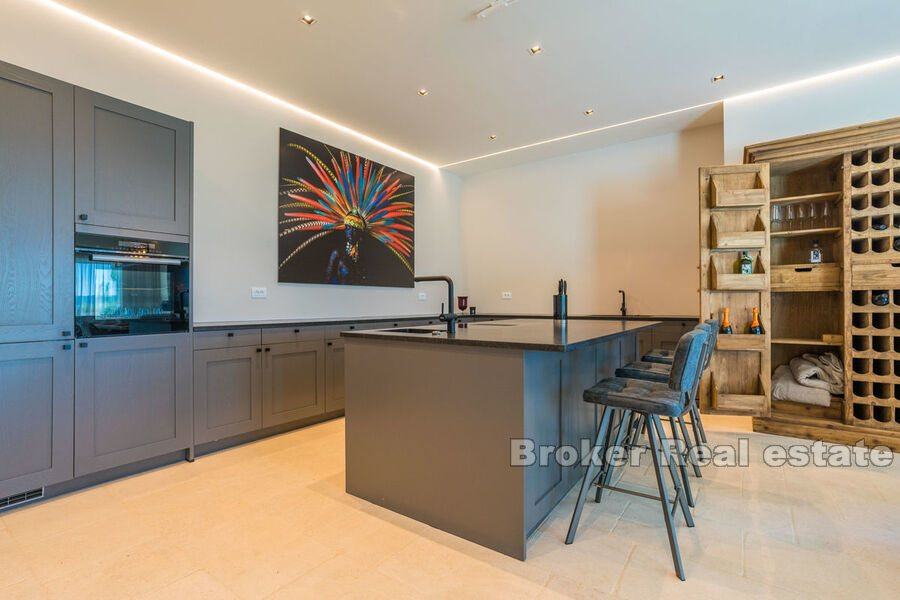 -Na 2.katu pronaći ćete wellness zonu sa saunom, whirlpoolom, vanjskim tušem i luksuznom garniturom za sjedenje. vanjska kuhinja s blagovaonom za 10 osoba; s koje se pruža jedinstven pogled na more i obližnju prirodu.instalirani Bluetooth zvučni sustav osigurava dodatno raspoloženje prilikom obiteljskih druženja.