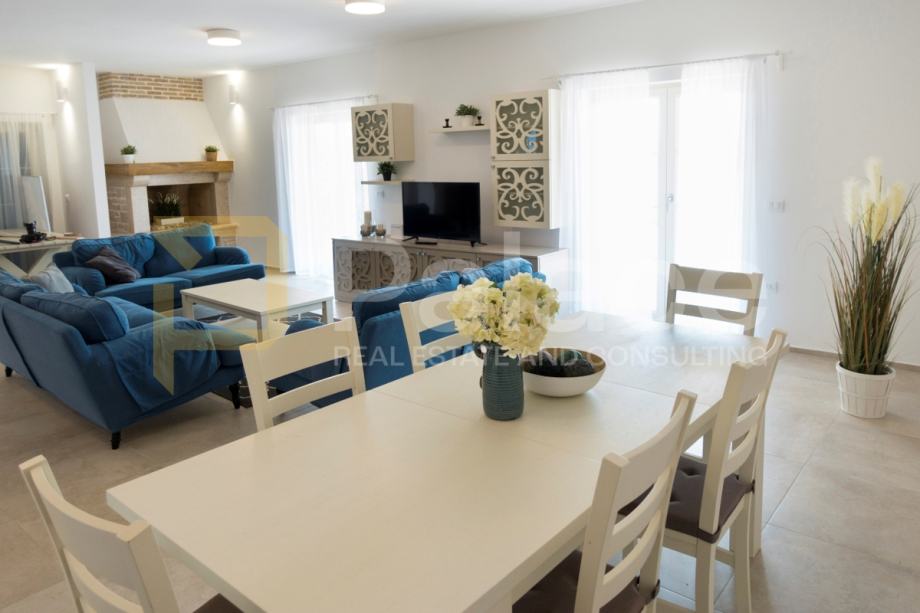 Okućnica je dovoljno prostrana za parkiranje više vozila, a unutrašnjost vile opremljena je podnim grijanjem kroz cijelu kuću i klimatizacijom u svim prostorijama. Nekretnina se prodaje potpuno namještena, s modernim kućanskim aparatima, što znači da je spremna za useljenje.