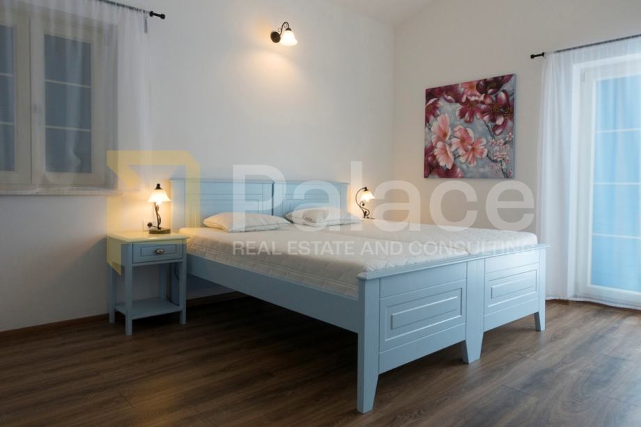 Na gornjem katu nalaze se dvije spavaće sobe s vlastitim kupaonicama, a s terasa se pruža prekrasan pogled na more i okolnu prirodu. U prizemlju se nalazi dodatna spavaća soba s kupaonicom, koja je idealna za goste.