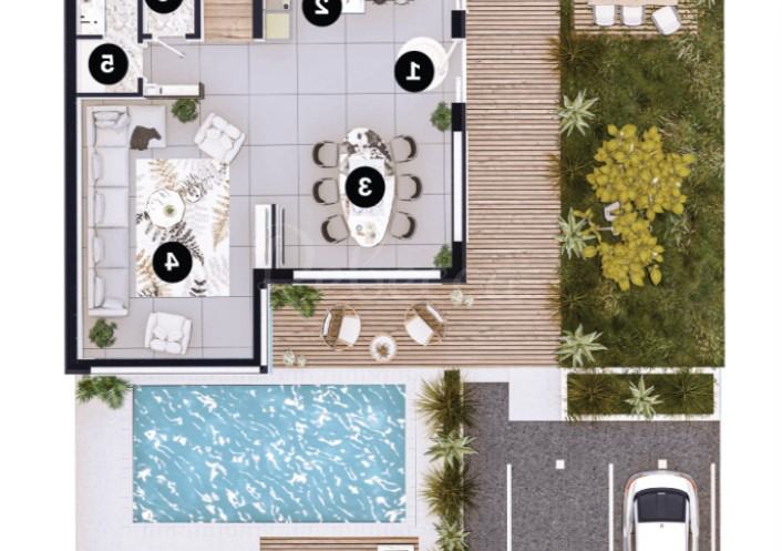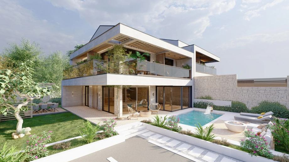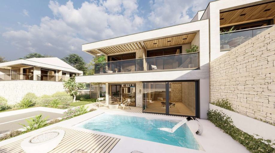 Prekrasan resort uz obalu trenutno u fazi izgradnje sastoji se od 21 vile i 16 apartmana, te nudi tri različite tipologije vila i četiri različite tipologije stanova. Resort je smješten na izuzetnoj lokaciji udaljen svega 100 metara od obale. Ova vila (C16) sastoji se od 4 spavaćih soba (od kojih su sve en suite), 4 kupaonice, prostranog dnevnog boravka s kuhinjom i blagovaonom te izlazom na uređenu okućnicu na kojoj se nalazi sunčalište i bazen. Resort nudi luksuzni život s wellness i SPA centrom, fitness centrom, dječjim prostorom, caffe barom, vinskim barom i stanicom za punjenje električnih automobila. U vili je ugrađeno podno grijanje na toplinsku pumpu, a hlađenje je putem klima uređaja. Ovdje je sve dizajnirano i projektirano kako bi život bio luksuzan i udoban. Unutar naselja možete biti sigurni jer je naselje pod video nadzorom. Vili pripadaju dva parkirna mjesta. Radovi su započeli u rujnu 2023., a resort će biti spreman do ljeta 2025. Stanovi se prodaju po principu ključ u ruke, uključujući potpuno uređenu i useljivu nekretninu BEZ namještaja.