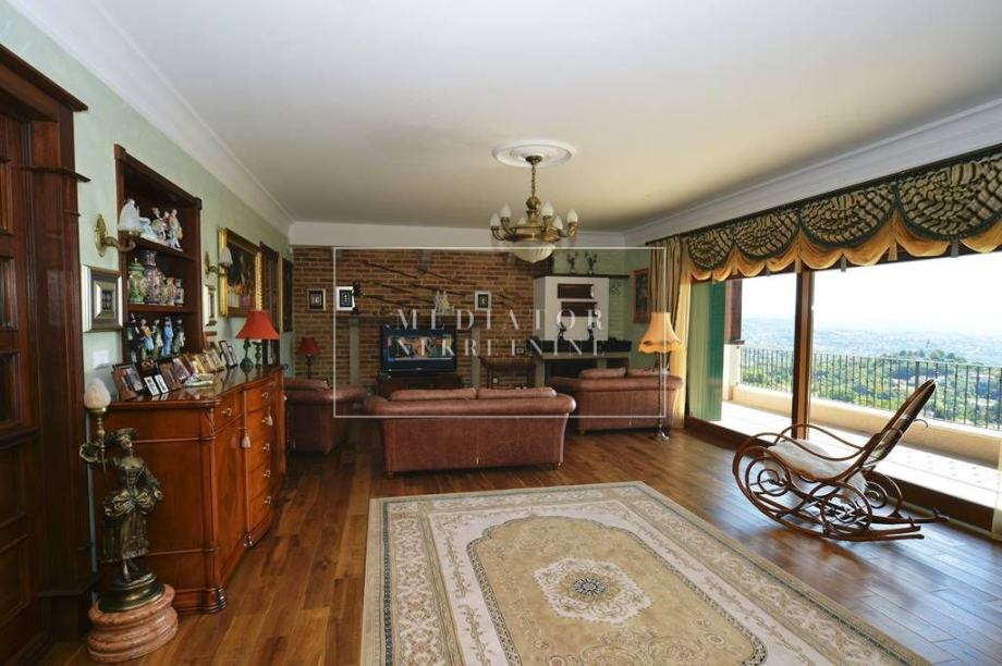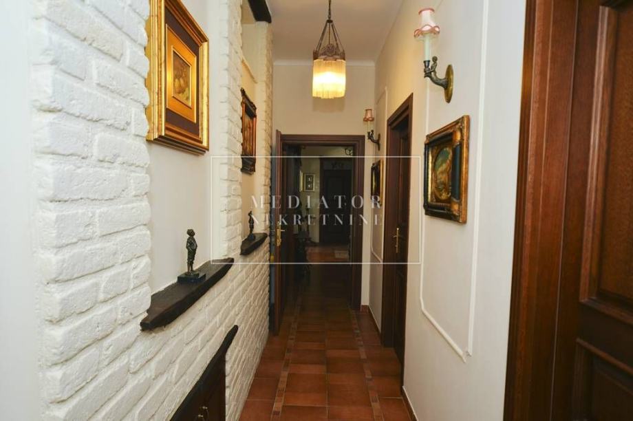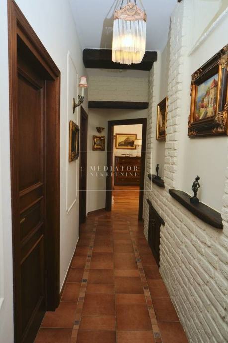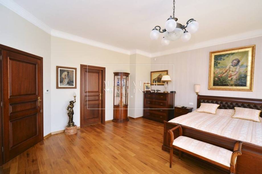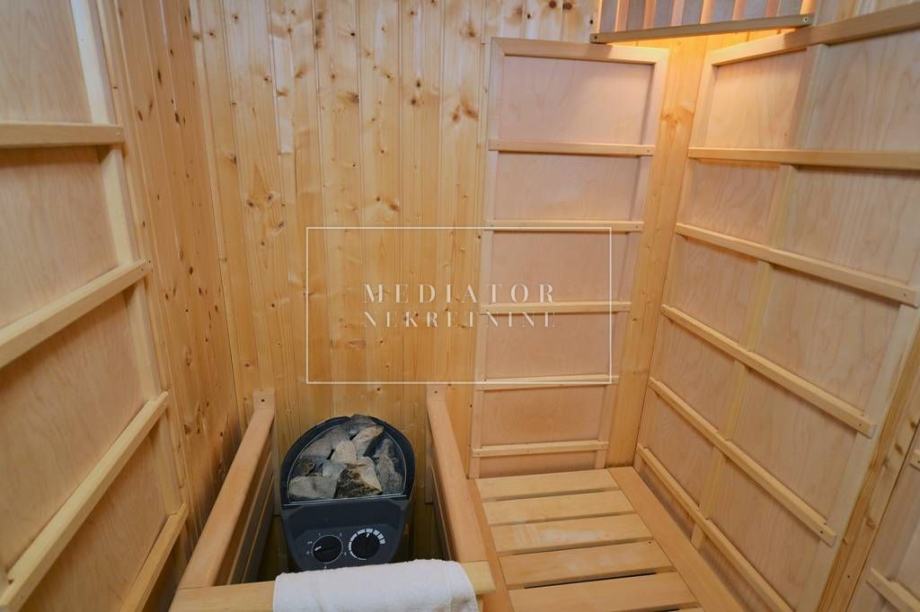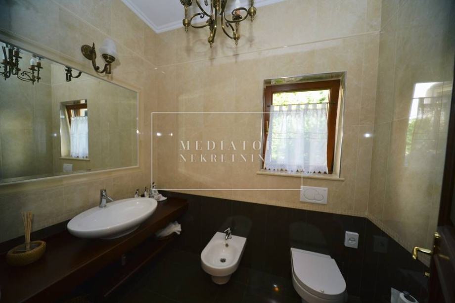 Ova prostrana nekretnina ima 5 elegantno uređenih spavaćih soba, 7 moderno opremljenih kupaonica, a dodatni sadržaji uključuju vrt, grijani bazen, wellness/spa zonu, teretanu, vinski podrum, kućni ured, praonicu rublja, kino dvoranu, roštilj, apartman za goste, drugu dnevnu sobu i dovoljno parkirnih mjesta – garažu za dva vozila te vanjski parking za još četiri automobila. Cijela vila je ograđena elegantnom ogradom od kovanog željeza, što jamči potpunu privatnost i sigurnost.