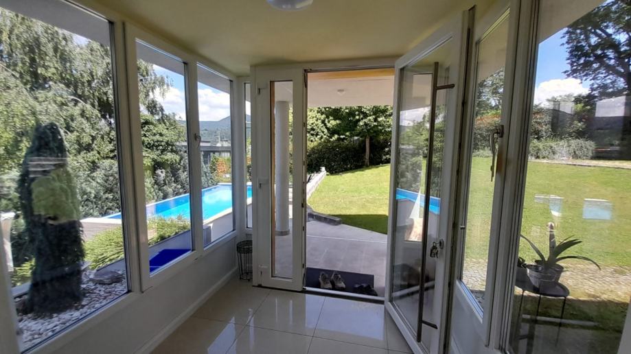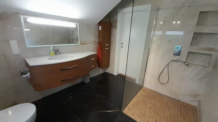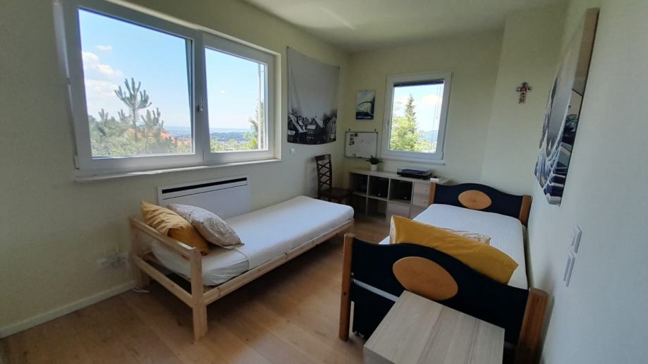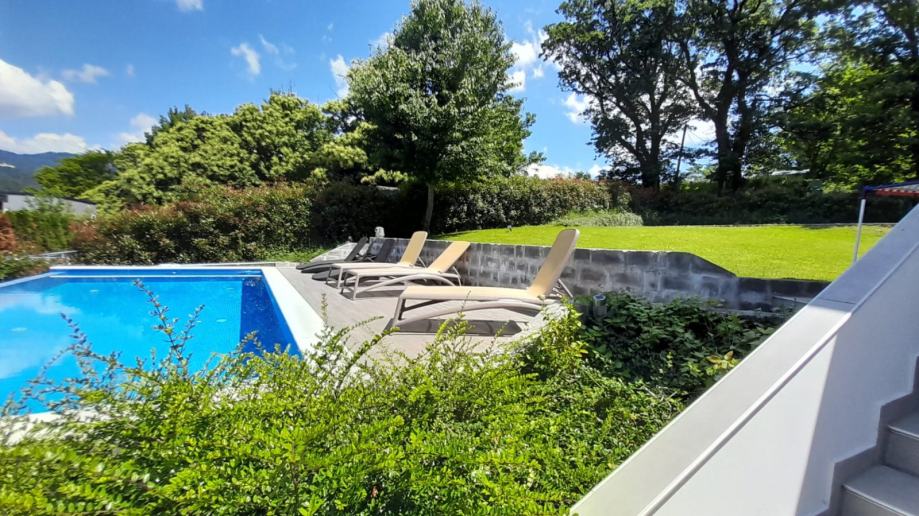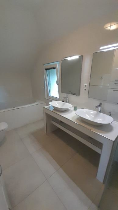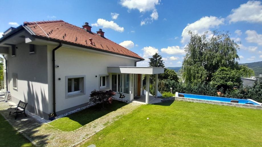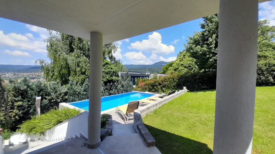 Na prodaju je LUKSUZNA VILA sa bazenom i okućnicom u Zagrebu na Šestinskom Vrhu iznad Pantovčaka, izgrađena 1995.godine, renovirana 2018.godine sveukupne površine 1.087 m2, sastoji se od vile ukupne površine 138 m2, nadstrešnice 51 m2, te okućnice i zemljišta/vrta ukupne površine 898 m2. Kuća posjeduje priključak vode, struje, plina, te priključak vodovoda i kanalizacije. Nadalje, posjeduje svoja 2 natkrivena parkirna mjesta, hidromasažni bazen s prilivnim kanalom, dogrijavanjem i senzorima za protustruju uz filter vode za omekšavanje od kamenca, te pumpu koja grije bazen i kuću, te automatsko navodnjavanje vrta i smart sustav. Vila je uređena na način da su prozori i velike staklene stijene PVC s troslojnim staklima, sustavom grijanja na 7 konvektora grijanje i hlađenje, kaminom, krovište/crijep, podovi su betonske deke s podnim oblogama i parketom s ugrađenim podnim grijanjem. Prizemlje vile se sastoji od hodnika, 1 velike primaće sobe, loggie, blagovaone, kuhinje i ostave uz kuhinju, velike terase, spremišta za odjeću i 1 wc-a. Kat vile se sastoji od 4 spavaće sobe, dvije kupaone s jednom hidromasažnom kadom i 2 tuš kabine. Vilu isto tako krasi namješteni jednosoban stan/apartman open koncept u suterenu, s kuhinjom, blagovaonom, sobom i 1 kupaonom s wc-om. U suterenu vile se nalaze i 3 povezana spremišta.Nekretnina je potpuno exluzivno namještena, u odličnom je stanju i sa vanjskim kompletno uređenim prostorom. Vlasništvo nekretnine je 1/1.