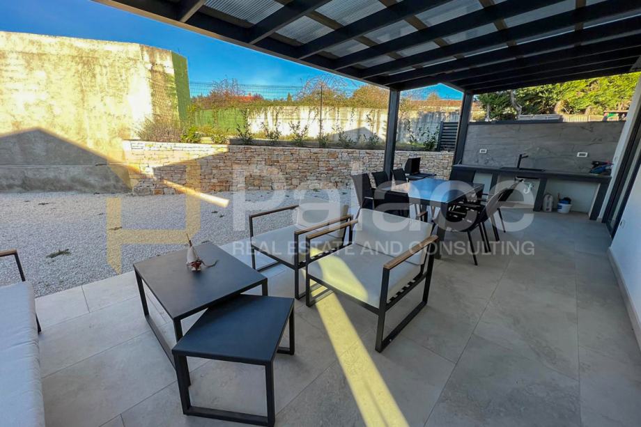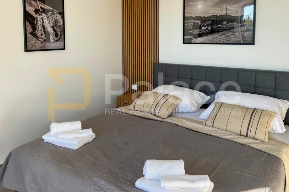 Unutrašnjost vile uključuje četiri prostrane spavaće sobe, svaka s vlastitom luksuznom kupaonicom, a dodatni WC na prizemlju osigurava praktičnost za sve posjetitelje. Ogromna terasa od 40 m² savršen je prostor za uživanje na svježem zraku, dok vanjski bazen dimenzija 7x5 metara omogućava opuštanje i uživanje tijekom cijele godine.