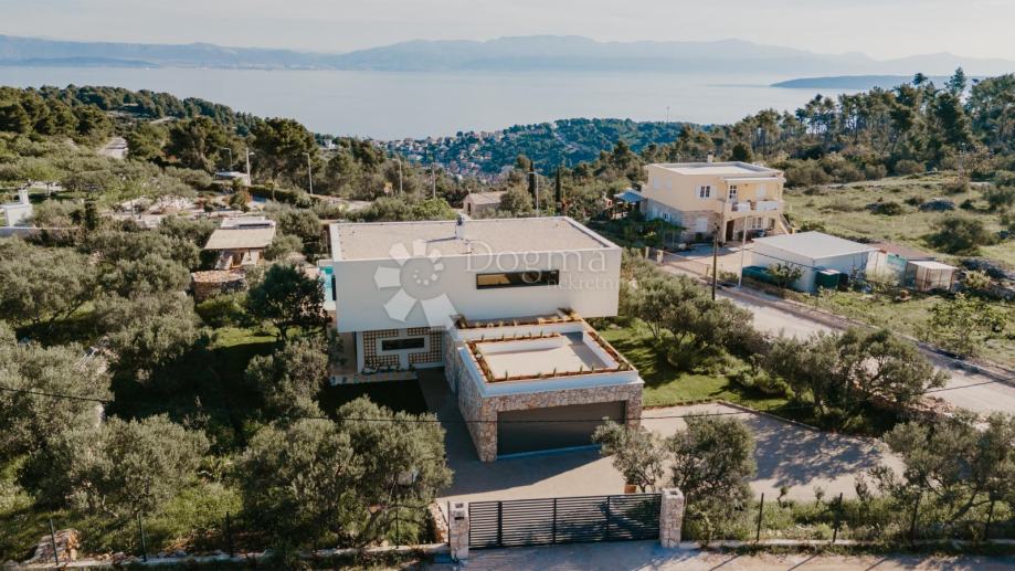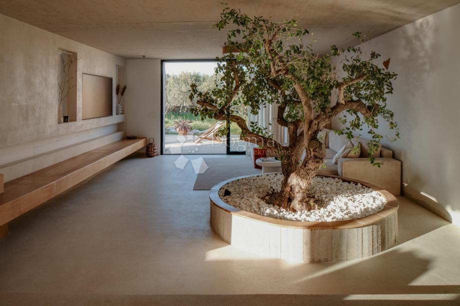 Smještena na mirnom otoku Šolti, Vila nudi ekskluzivan bijeg s očaravajućim pogledom na Split i otok Brač. Dizajnirana oko očuvanog, stoljetnog maslinovog stabla u središtu imanja, vila spaja suvremenu eleganciju s autentičnom mediteranskom dušom. Svaki detalj – od odabira materijala do prostornog rasporeda i skladnog uklapanja u prirodni krajolik – kreiran je za maksimalnu udobnost i mir.