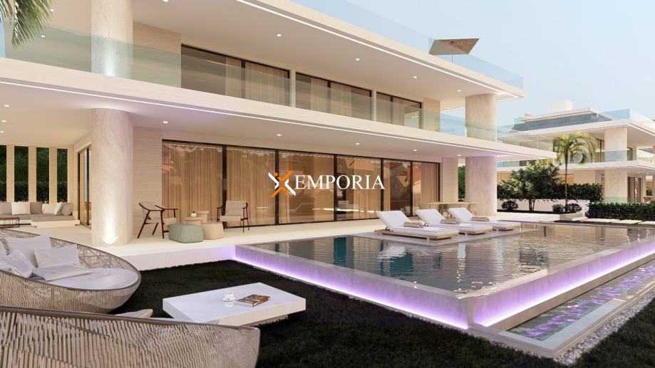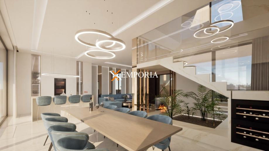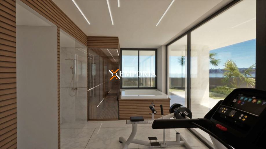 Ukupna bruto površina iznosi 851,54 m², a posebnu vrijednost daju joj čak dva bazena: donji površine 42,50 m² te krovni od 19,89 m², s kojega se pruža prekrasan pogled na more.