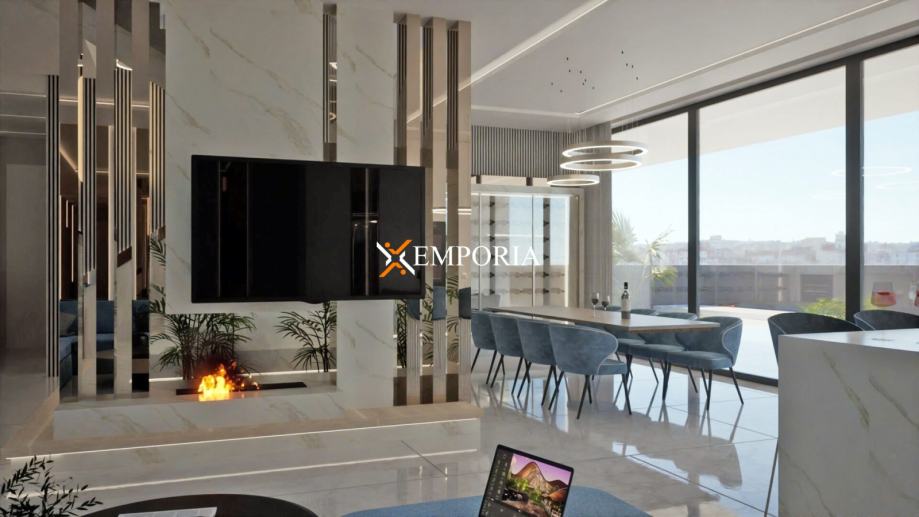 Krovna terasa (243 m²) – pravo mjesto za uživanje s bazenom, vanjskom kuhinjom s velikim šankom, roštiljem, frižiderom i prostranim dijelom za druženje s obitelji i prijateljima.