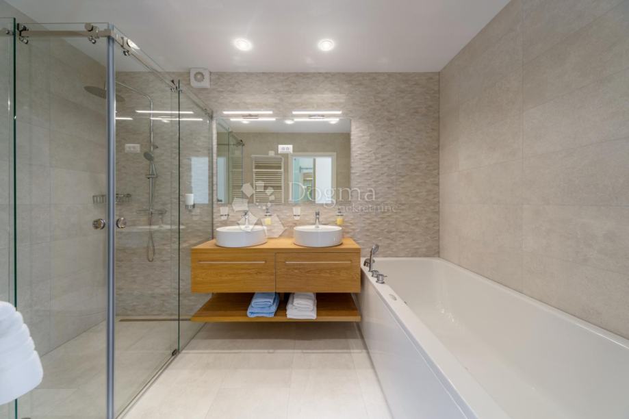 S ukupno 690 m² na dvije etaže, vila nudi maksimalnu udobnost i promišljeni dizajn. Koncipirana kao dvije odvojene stambene jedinice, omogućuje fleksibilnost i privatnost – idealno za obitelji, goste ili investicijske svrhe. Jedinice su povezane elegantnim unutarnjim stubištem, dok protupožarna vrata osiguravaju diskreciju i neovisnu uporabu.