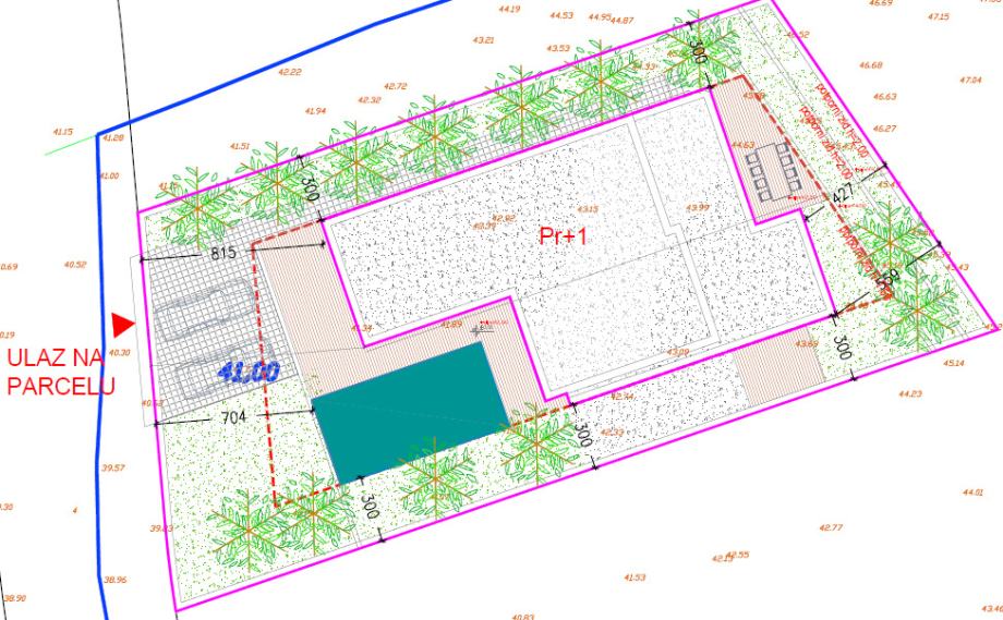 - Prizemlje (182,55 m2 bruto) – ulaz, spremište, wc, kuhinja i blagovaonica, prostrani dnevni boravak, spavaća soba s kupaonicom, vanjski wc, natkrivena terasa s ljetnom kuhinjom, velika terasa s bazenom, sunčalište i vrt.