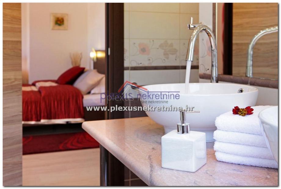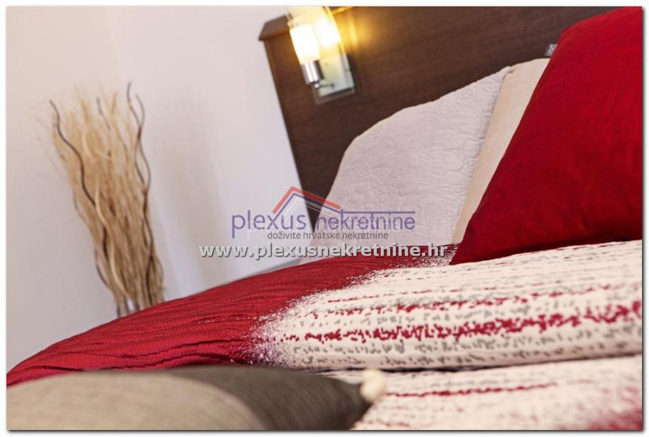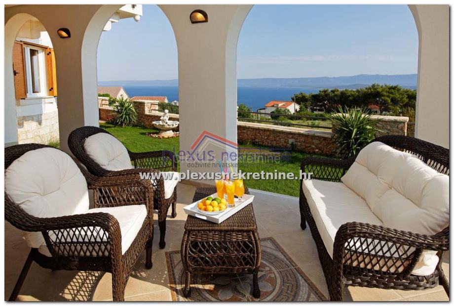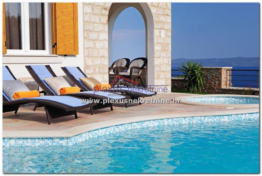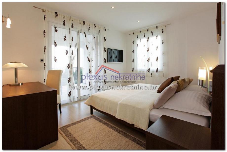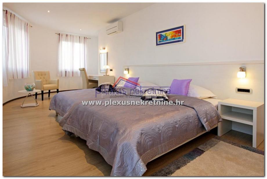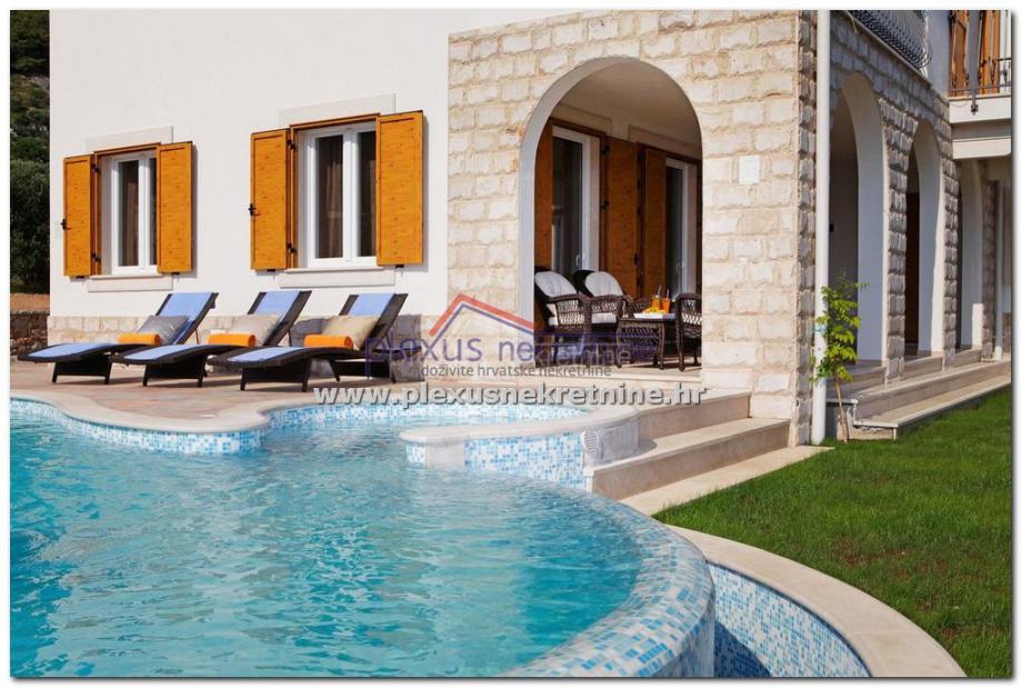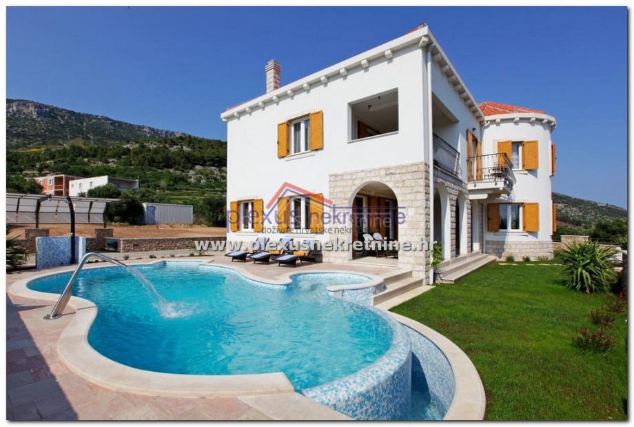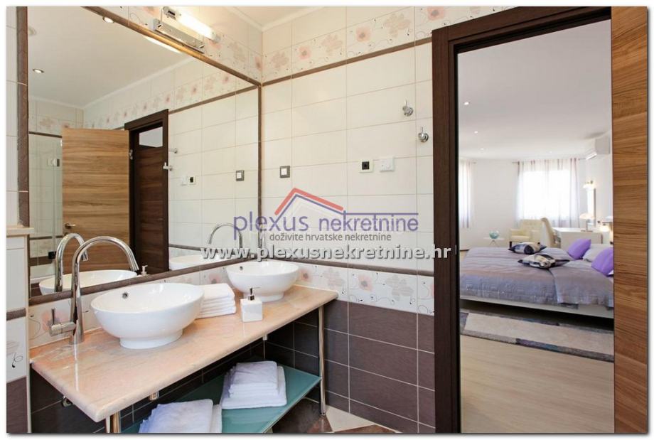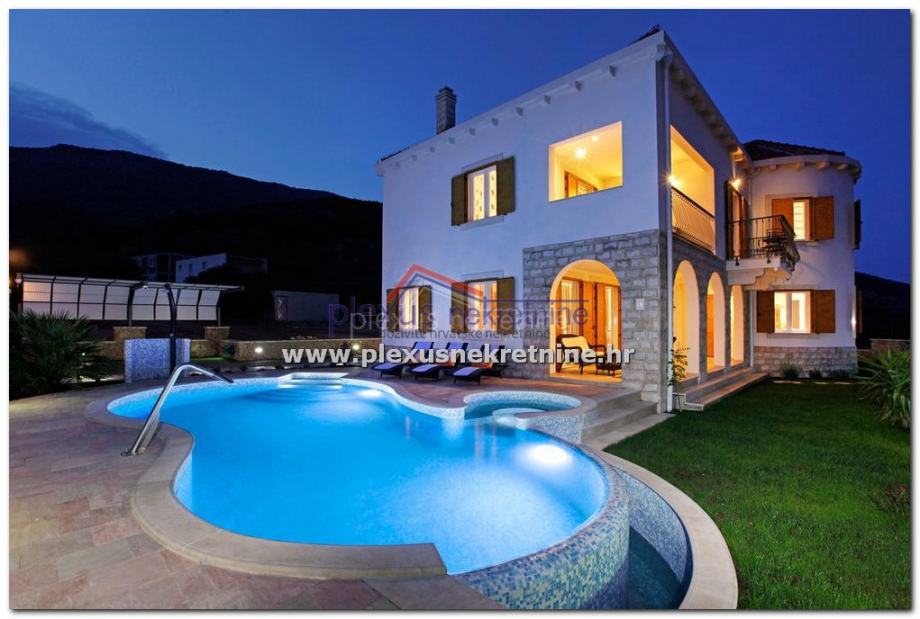 Luksuzna vila sa 5 zvjezdica, s 4 sobe, odnosno kapaciteta 8 osoba, sagrađena na parceli cca. 550 m2, novogradnja, stara 1,5 godina u dalmatinskom stilu uređenim, dvorištem s puno zelenila, cvijeća i mediteranskog bilja.