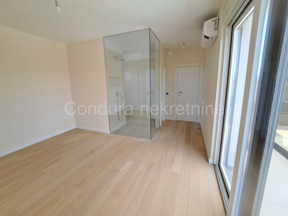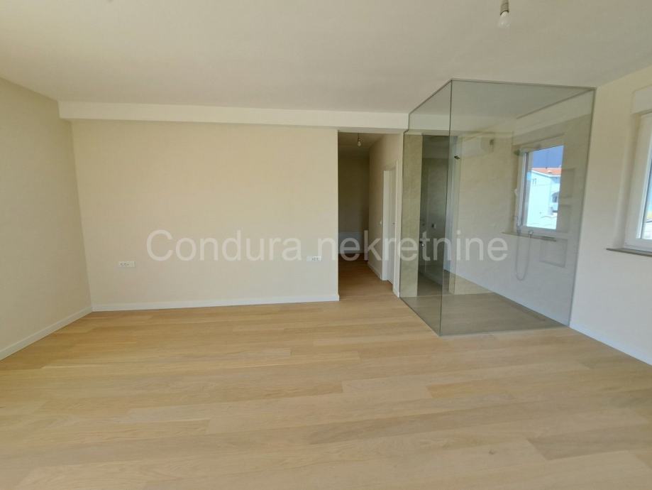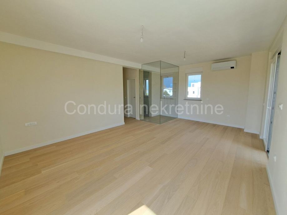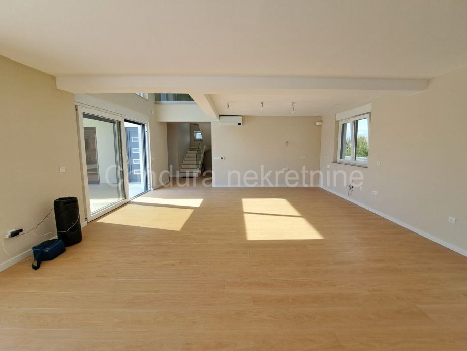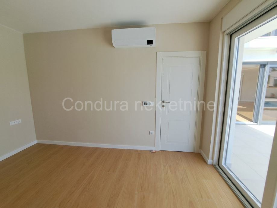 Velike staklene stijene omogućuju puno dnevne svjetlosti. Iz dnevnog boravka omogućen je izlaz na lijepo uređen prostor s bazenom (8m x 3,5m), vanjskim tušem i ljetnom kuhinjom, idealan za druženja, ispijanje jutarnje kave ili večernjih koktela.
