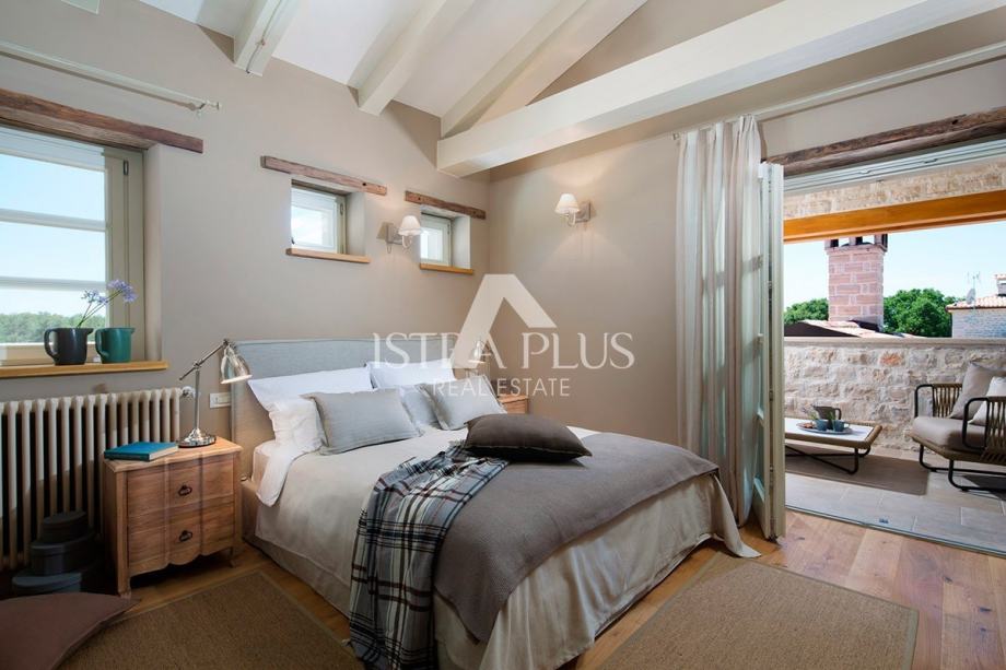 Na katu su raspoređene tri dvokrevetne sobe s kupaonicama. Dvije su s bračnim krevetom, a jedna s dva odvojena kreveta. Dvije sobe imaju izlaz na terase.