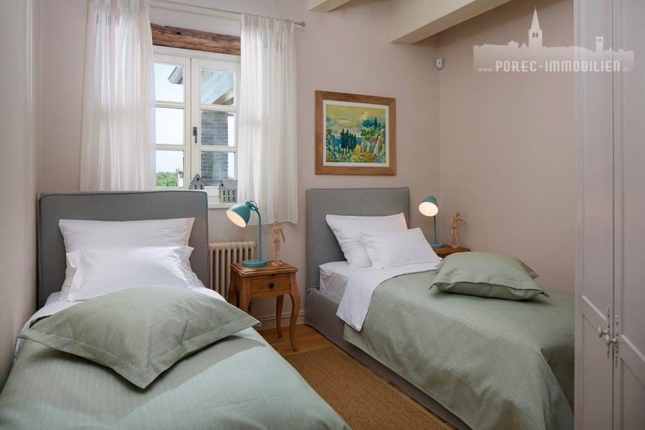 Na prvom katu kuće nalaze se ukupno 4 dvokrevetne sobe, svaka sa svojom kupaonicom. Jedna soba ima bračni krevet i vlastiti balkon, dvije sobe imaju bračne krevete i jedna soba je sa dva odvojena kreveta.