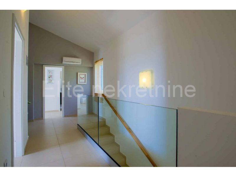 Građena je u mediteranskom stilu, te pruža potpuni mir i tišinu. Okućnica je uređena sa velikim bazenom i dvorištem. Pored bazena i sunčališta nalazi se vanjski prostor sa ljetnom kuhinjom, grilom te velikom natkrivenom terasom.