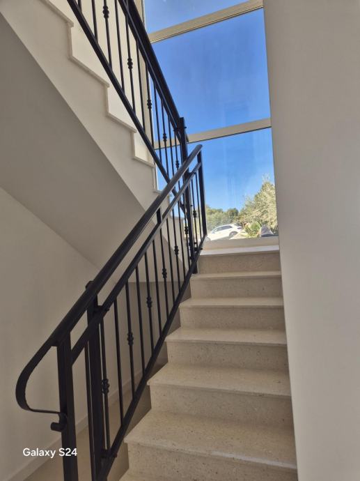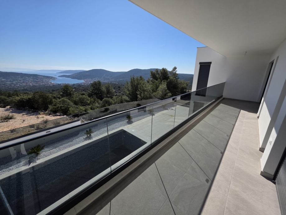 Na katu se nalaze tri elegantno uređene spavaće sobe, svaka s vlastitom kupaonicom i izlazom na loggiu s panoramskim pogledom.