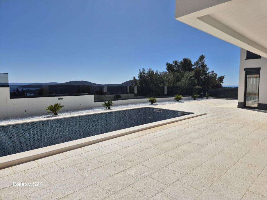 Ukupna površina parcele iznosi 500 m², od čega je 37 % zelenih površina, dok sama vila ima 200 m² bruto površine, uključujući prostrane terase i pomoćni objekt uz ljetnu kuhinju.