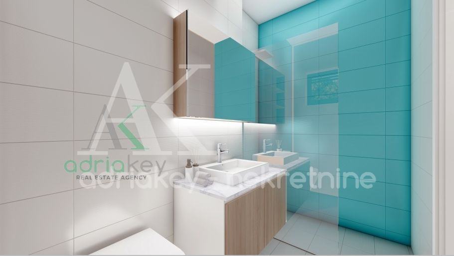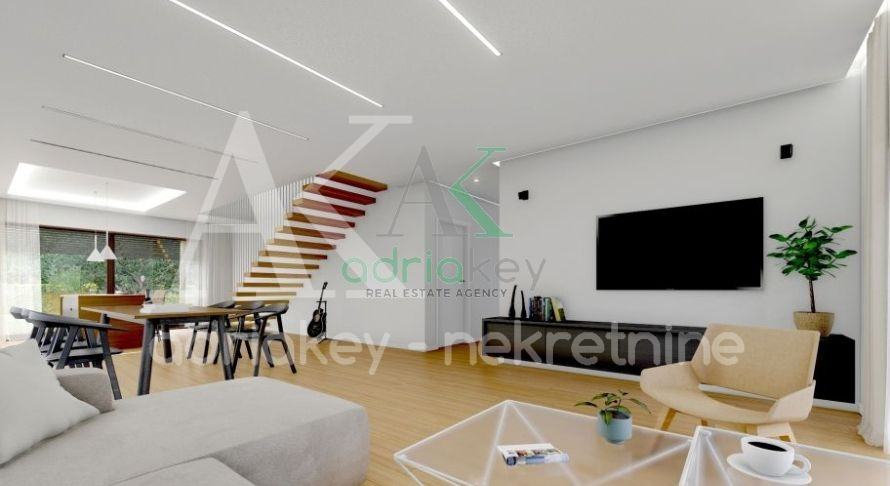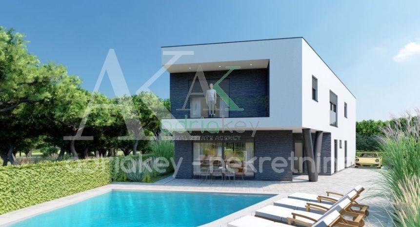 Prodaje se potpuno namještena vila s dvije stambene jedinice i grijanim bazenom.Ukupne neto korisne površine 232,73 m2 u Kakmi blizu Biograda na moru, trenutačno u gradnji na parceli površine 734 m2.