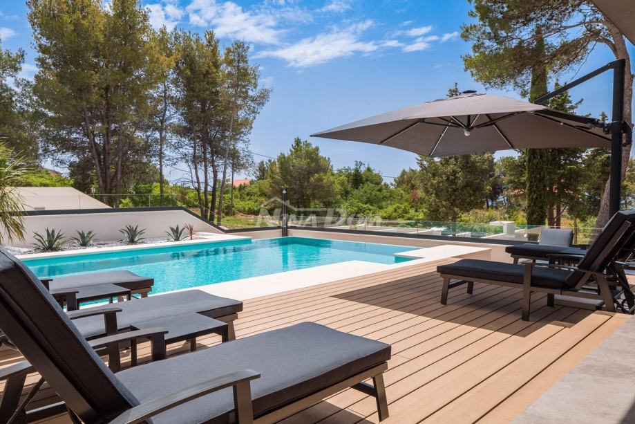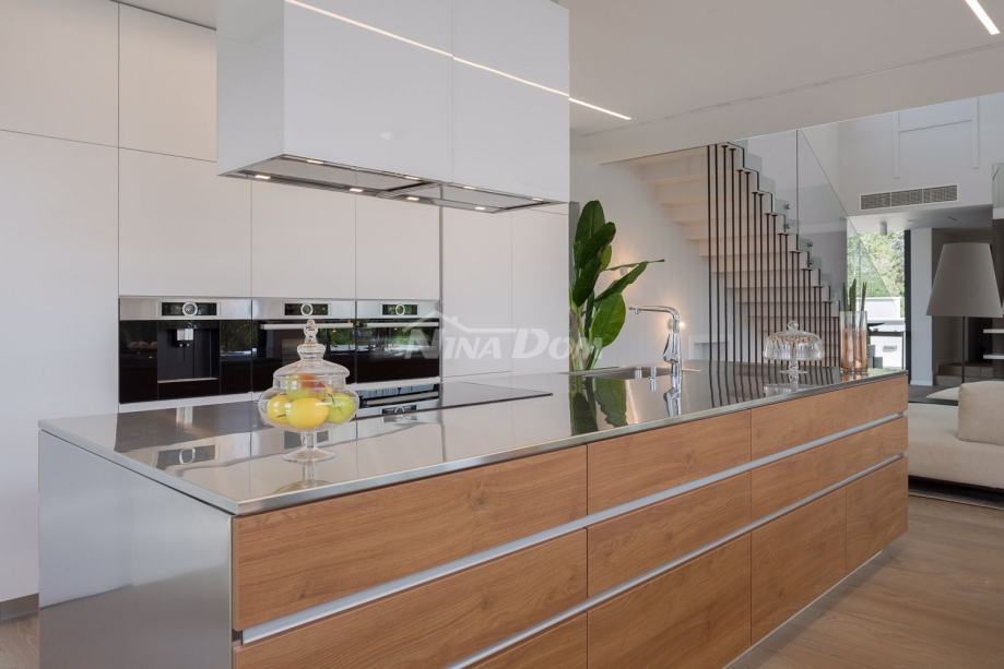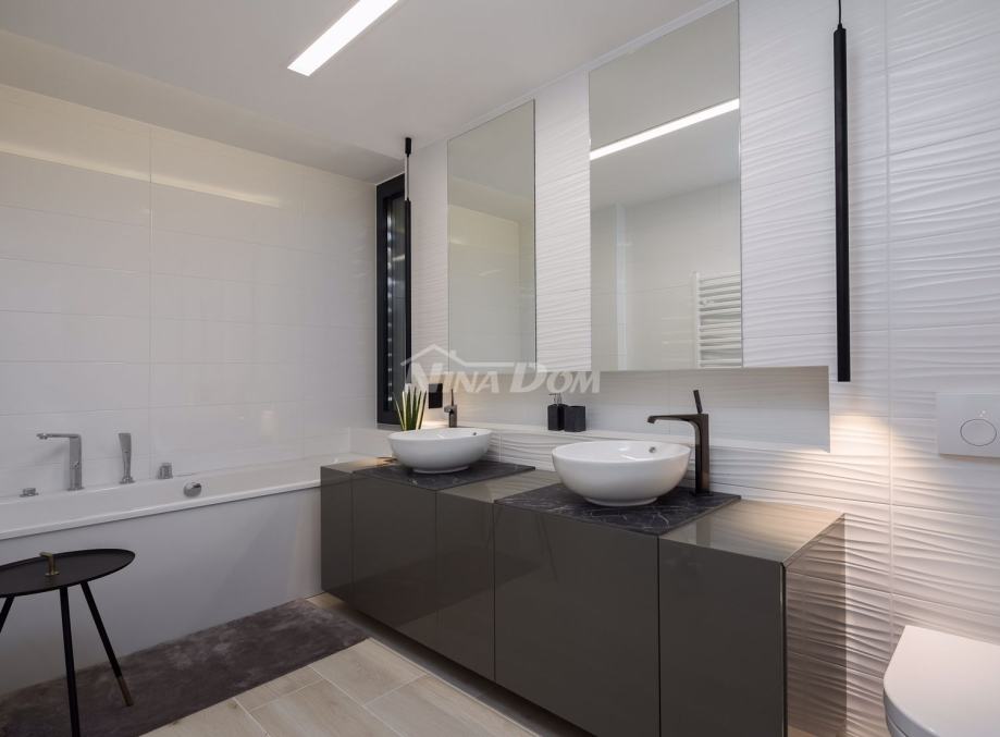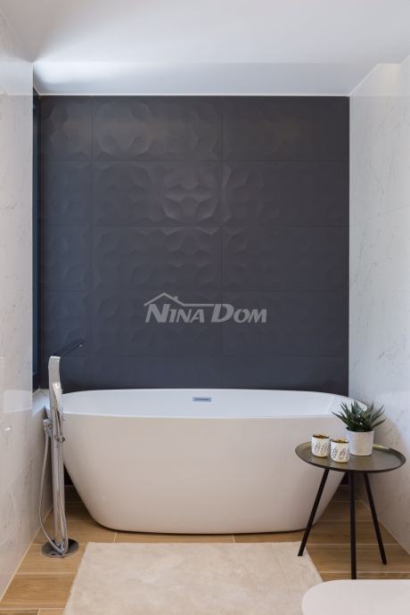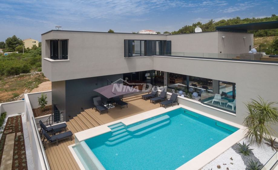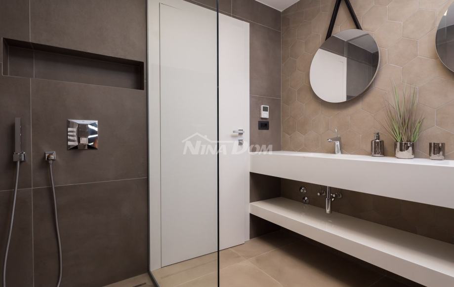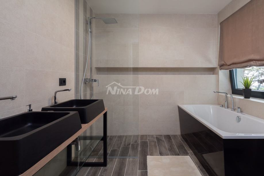 Vila se nalazi u turističkom i povezanom dijelu grada - Diklu, koji je udaljen nekoliko kilometara od stoljetnog grada, a 600 metara od prekrasnih plaža, savršenih za obitelji s djecom, s brojnim dodatnim rekreacijskim i sportskim sadržajima.Ova luksuzno uređena Villa ima 453 m2 i sastoji se od 5 spavaćih soba opremljenih walk-in ormarima, smart TV-om i zvučnicima za kontrolu razglasa, 3 odvojena WC-a i 5 en-suite kupaonica od kojih su dvije opremljene kadom. , sa tuš kabinama. Kuhinja vile je potpuno opremljena s blagovaonicom, predviđenom za 10 osoba, koja je povezana s konobom koja također može primiti 10 osoba. U modernom dnevnom boravku opremljenom Hi-Fi sustavom i Smart TV-om možete uživati u odmoru s društvom ili obitelji nakon aktivnog dana, a ako radite i putujete, u dnevnom boravku se nalazi radna soba koja će vam pružiti uz mirnu radnu atmosferu. Posebna ponuda vile uključuje teretanu, saunu i jacuzzi. U dvorištu se nalazi prekrasan bazen od 48 m2 opremljen mlaznicama za grijanje i hlađenje. Cijela Villa je ograđena visokim zidom, tako da Vam jamči mir i privatnost.Veličina zemljišta na kojem se nalazi vila je 1116m2.
